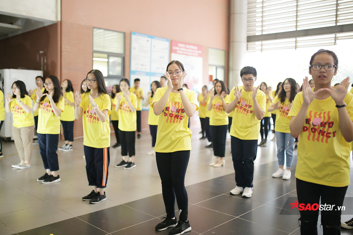 Các học sinh với màu áo vàng năng động, “quẩy” hết mình trong màn flashmob.