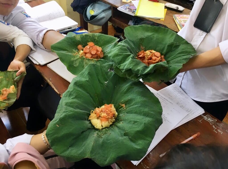 Cụ thể, các cô cậu đã sử dụng gói xôi gói bằng lá sen thay vì dùng túi nilon hàng ngày để kêu gọi bảo vệ môi trường. Mỗi ngày một lớp học nếu dùng gói xôi bình thường sẽ thải ra môi trường hàng chục túi nilon nhưng với cách sử dụng lá sen vừa bảo vệ môi trường vừa làm cho cảnh quan trường trở nên sạch đẹp hơn.