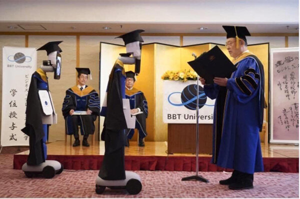Trước đó, để ngăn chặn sự lây lan COVID- 19 trong cộng đồng, trường ĐH Business Breakthrough ở Tokyo, Nhật Bản (BBT University) đã sử dụng rô bốt trong việc trao bằng tốt nghiệp cho sinh viên.