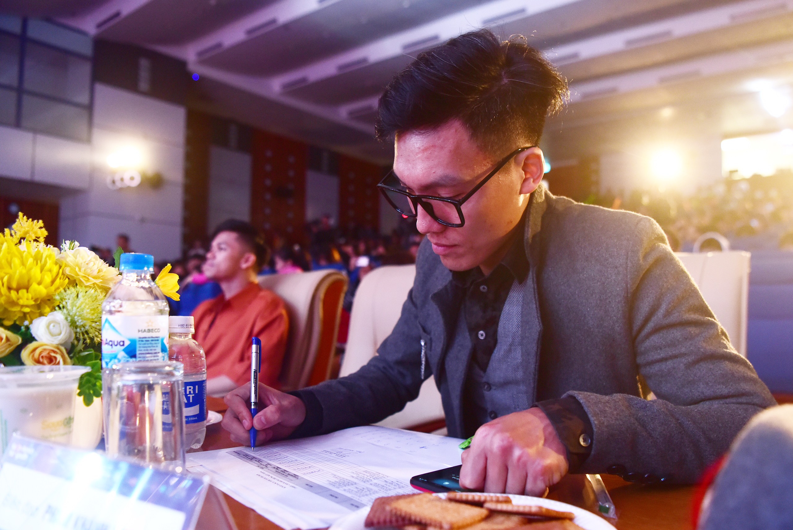 Ca sĩ Trọng Hiếu khuấy động bầu không khí. Anh cũng là thành viên Ban giám khảo của cuộc thi.