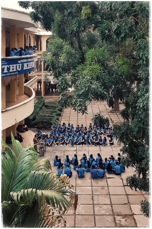 Những buổi sinh hoạt dưới cờ cũng nhờ những hàng cây này mà mát hơn. Ảnh: Nhật Quỳnh