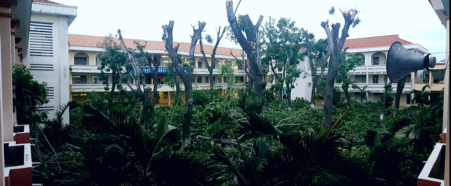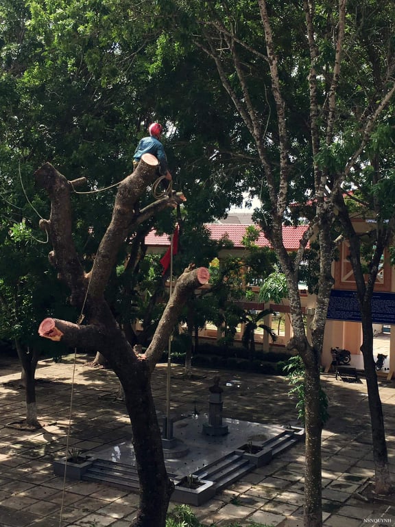Nhật Quỳnh chia sẻ: “Mặc dù trường tỉa cây để tránh cây đổ trong những ngày mưa, bão, thế nhưng mình vẫn cảm thấy tiếc nuối. Sân trường cũng không còn màu xanh nữa, nắng cũng sẽ gay gắt hơn, không khí cũng không được trong lành như xưa, thế nhưng chung quy những việc làm ấy chỉ đều muốn tốt cho chúng mình”.
