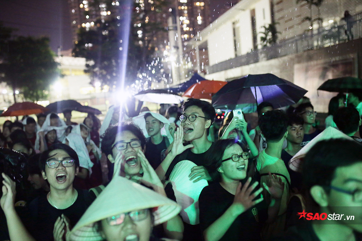 Cổ vũ vô cùng cuồng nhiệt, bất chấp mưa ngày càng nặng hạt