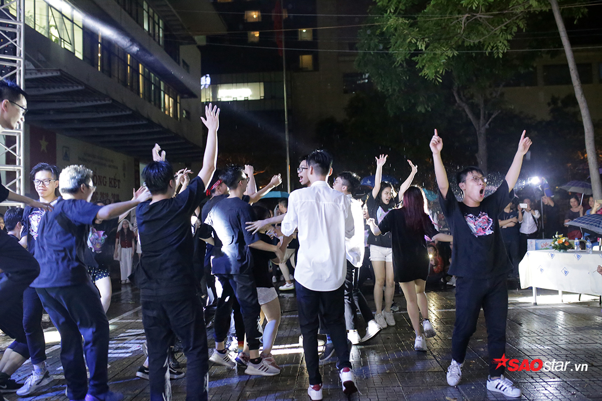 Dù trời có mưa giữa lúc chương trình diễn ra nhưng nhiều bạn trẻ vẫn tiếp tục chạy ra sân để vui đùa những giấy phút cuối cùng của đời học sinh.