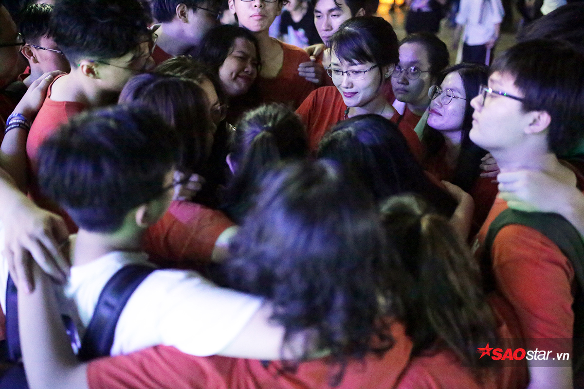 Thời khắc chia tay đến, những cánh tay siết chặt, những cái ôm không dứt, nhiều bạn đã òa khóc và cùng kể lại những kỷ niệm vui buồn với nhau.