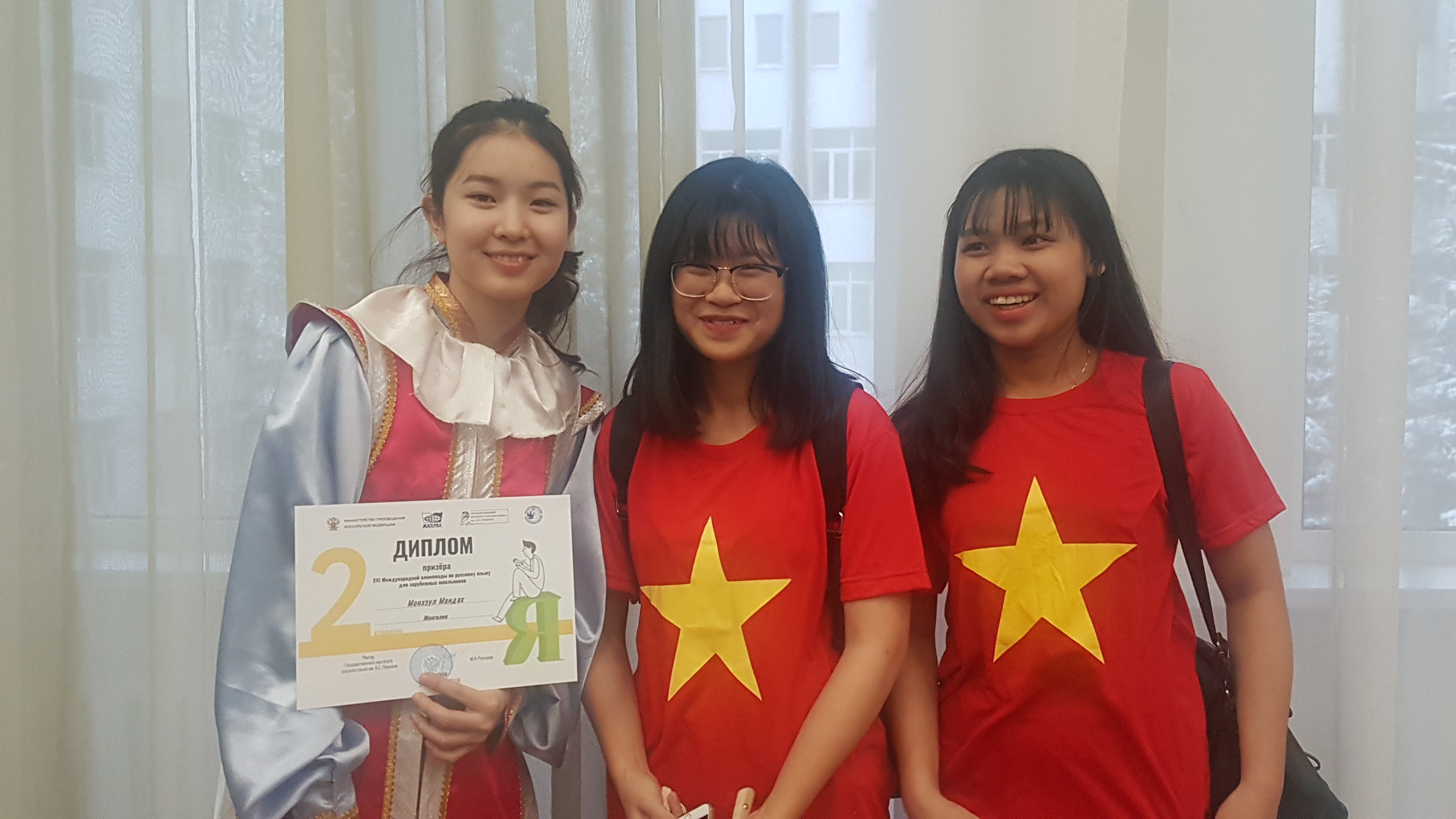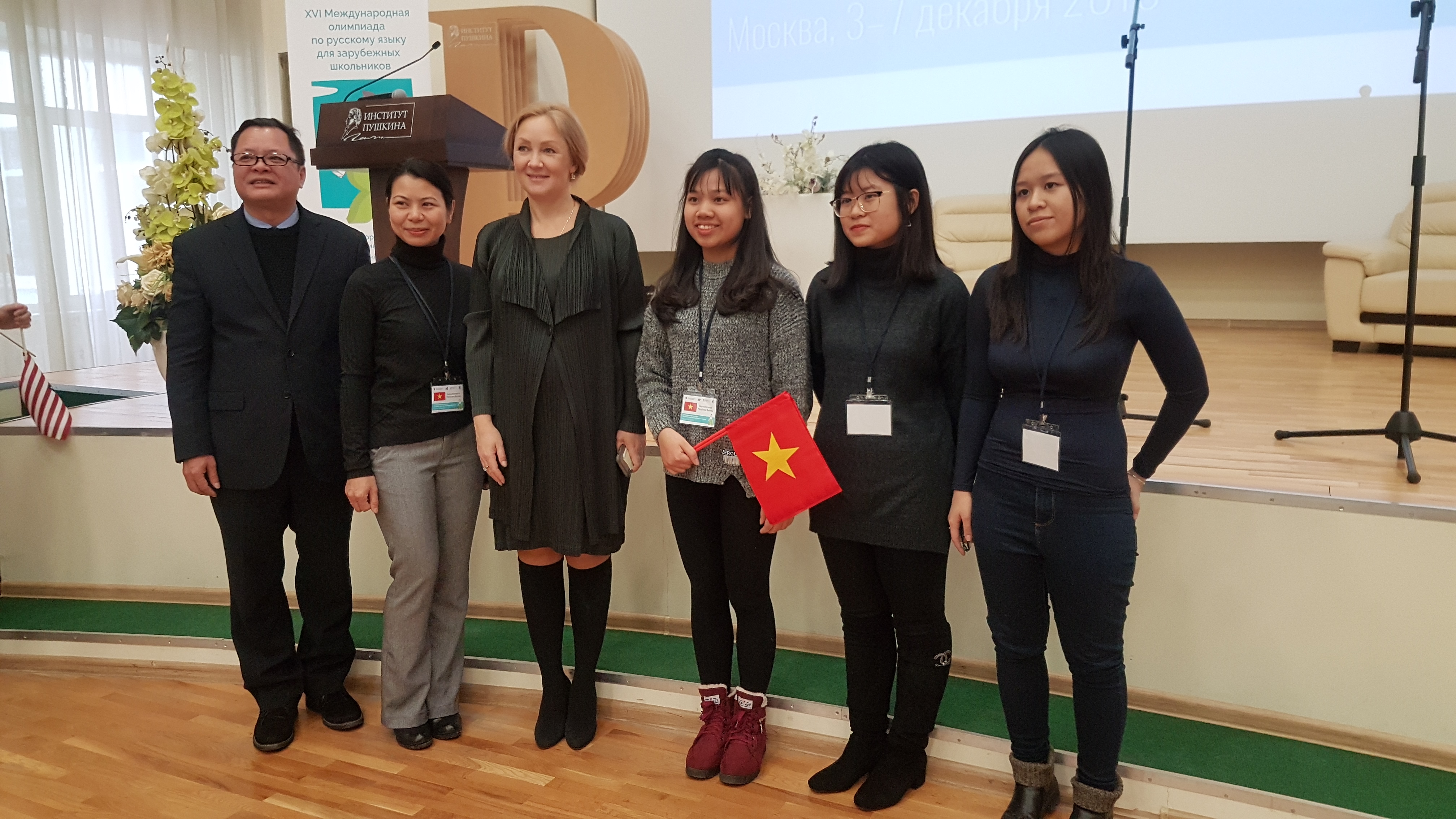 Đội tuyển gồm có 3 em là Nguyễn Quỳnh Anh (Trường THPT Chuyên Nguyễn Huệ, Hà Nội), Cao Thị Linh Chi (Trường THPT Chuyên Hoàng Văn Thụ, tỉnh Hòa Bình) và Đinh Thị Phương Anh (Trường THPT Đại sứ quán Nga tại Việt Nam, Hà Nội) do TS. Đinh Thị Thu Huyền - Trưởng khoa NN&VH Nga làm Trưởng đoàn.