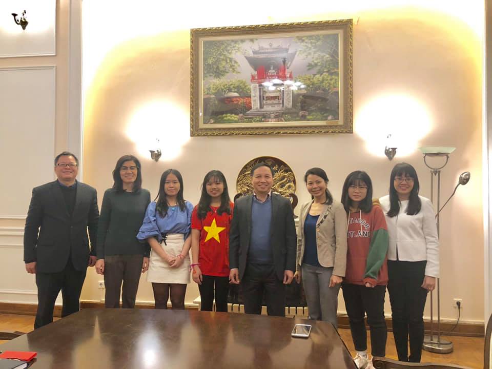 Đội tuyển Việt Nam chụp ảnh lưu niệm cùng Đại sứ Ngô Đức Mạnh