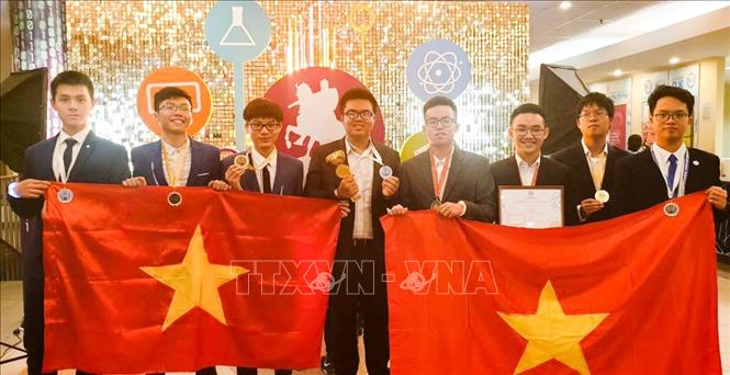 Đoàn học sinh Việt Nam đạt được thành tích ấn tượng ngay trong lần đầu tiên tham dự với 3 huy chương vàng, 3 huy chương bạc và 2 huy chương đồng. Ảnh: TTXVN phát