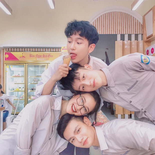 Tấm ảnh được cậu bạn 8.0 IELTS chụp với 3 người bạn lần lượt từ trên xuống là: Thiện Khiêm, Quang Huy, Cẩm Linh và Đức Thắng khiến cộng đồng mạng trầm trồ xin infor vì ai nấy đều quá xinh đẹp và tài năng.