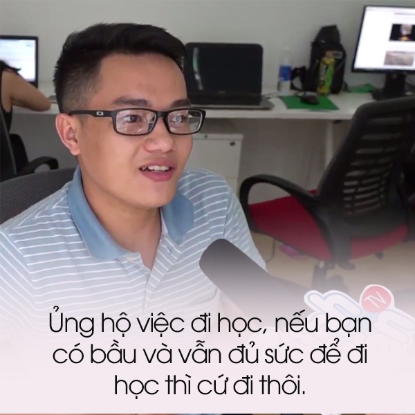 “Mình nghĩ đó là việc bình thường thôi. Người ta có bầu chứ không làm gì xấu, sao lại không được hoặc không nên đi học?”, bạn Hoàng (ĐH Văn Lang) đưa ra thắc mắc.