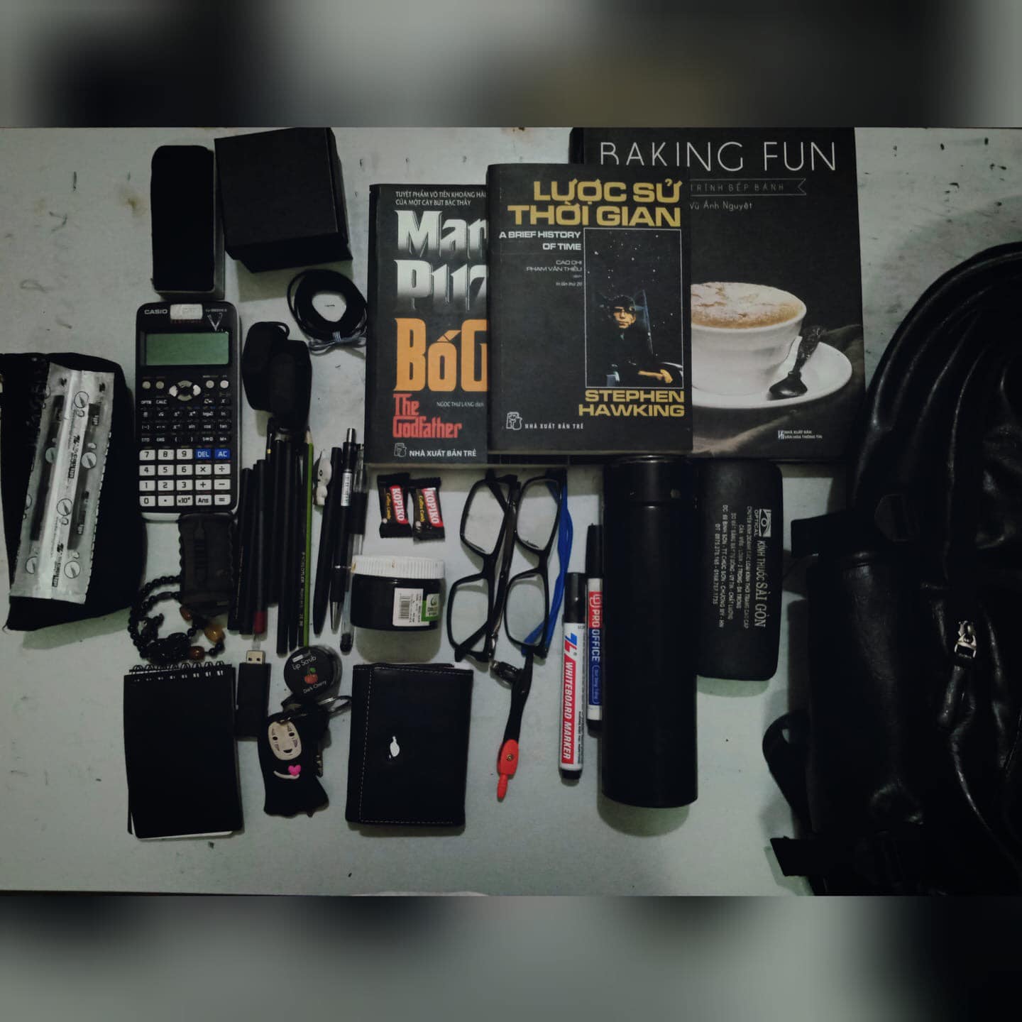 Đồ dùng học tập của chàng trai yêu màu xanh. Ảnh: Đức Lê