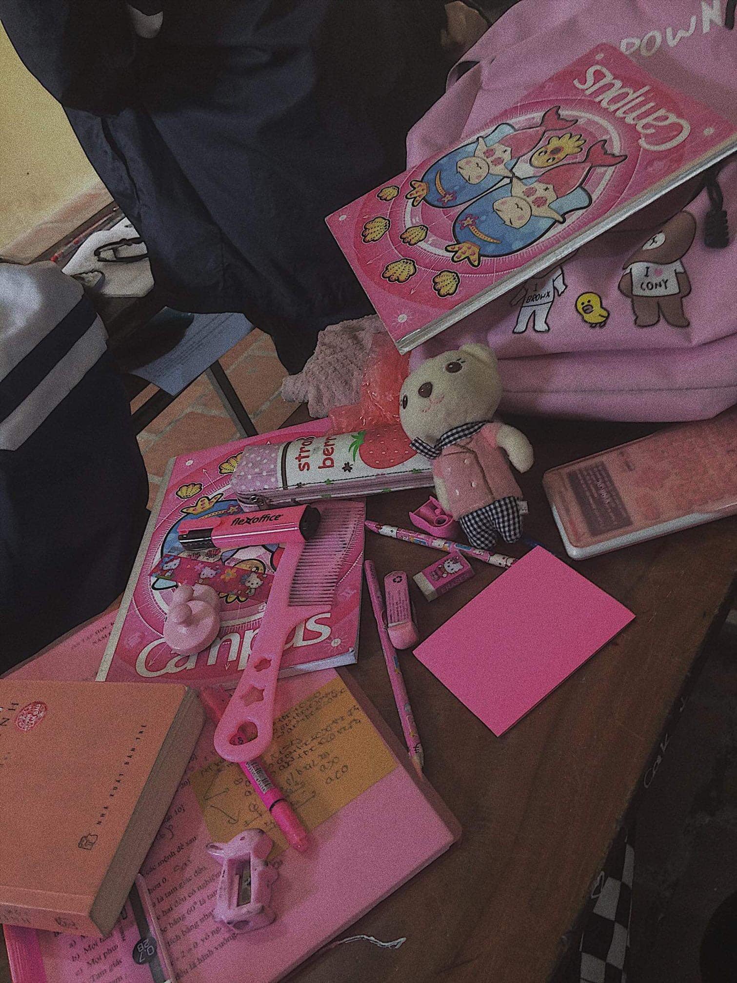 Bộ sưu tập của cô bạn ưa thích màu hồng trước thềm năm học mới. Ảnh: Tôn Hoàng Bảo Ngọc