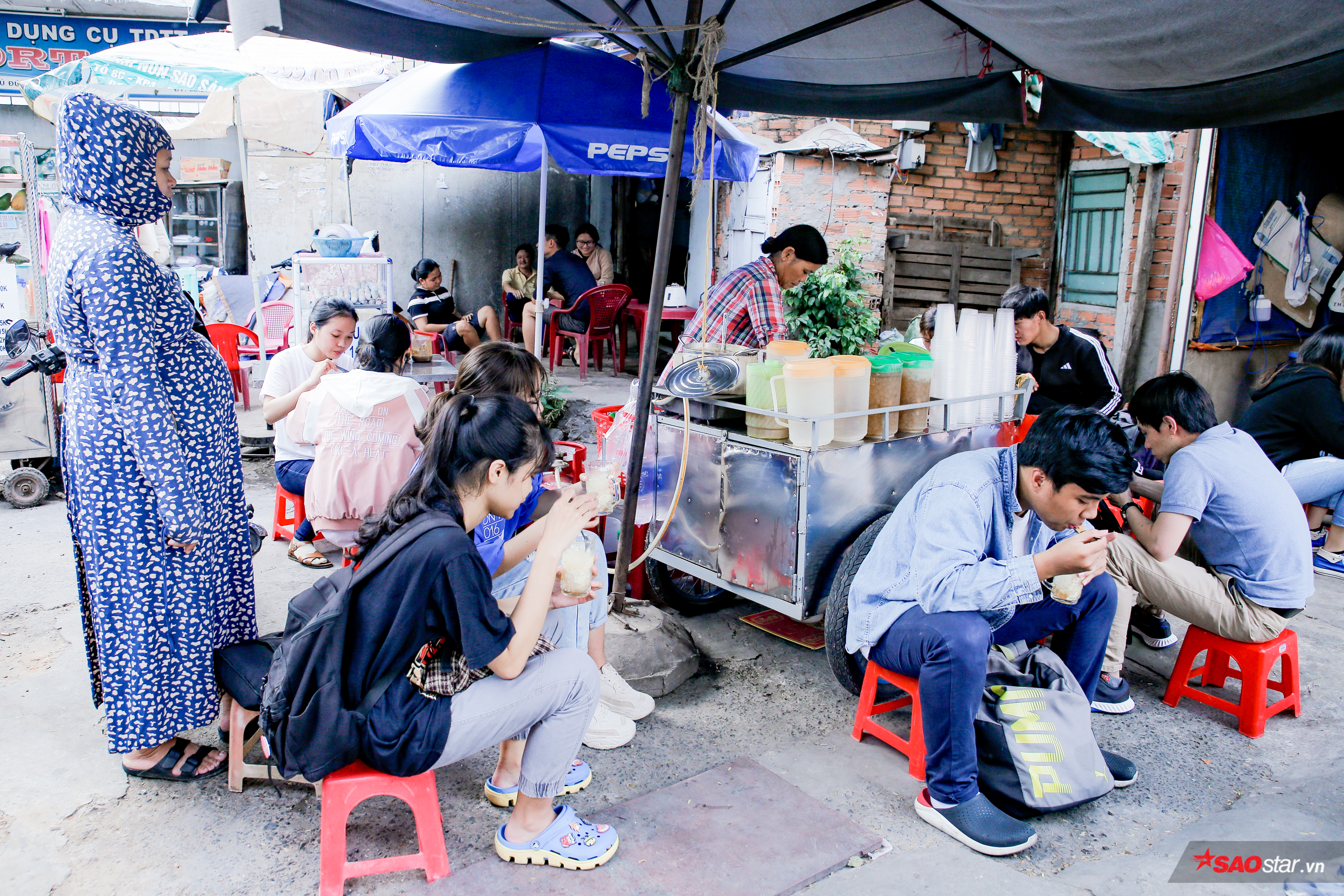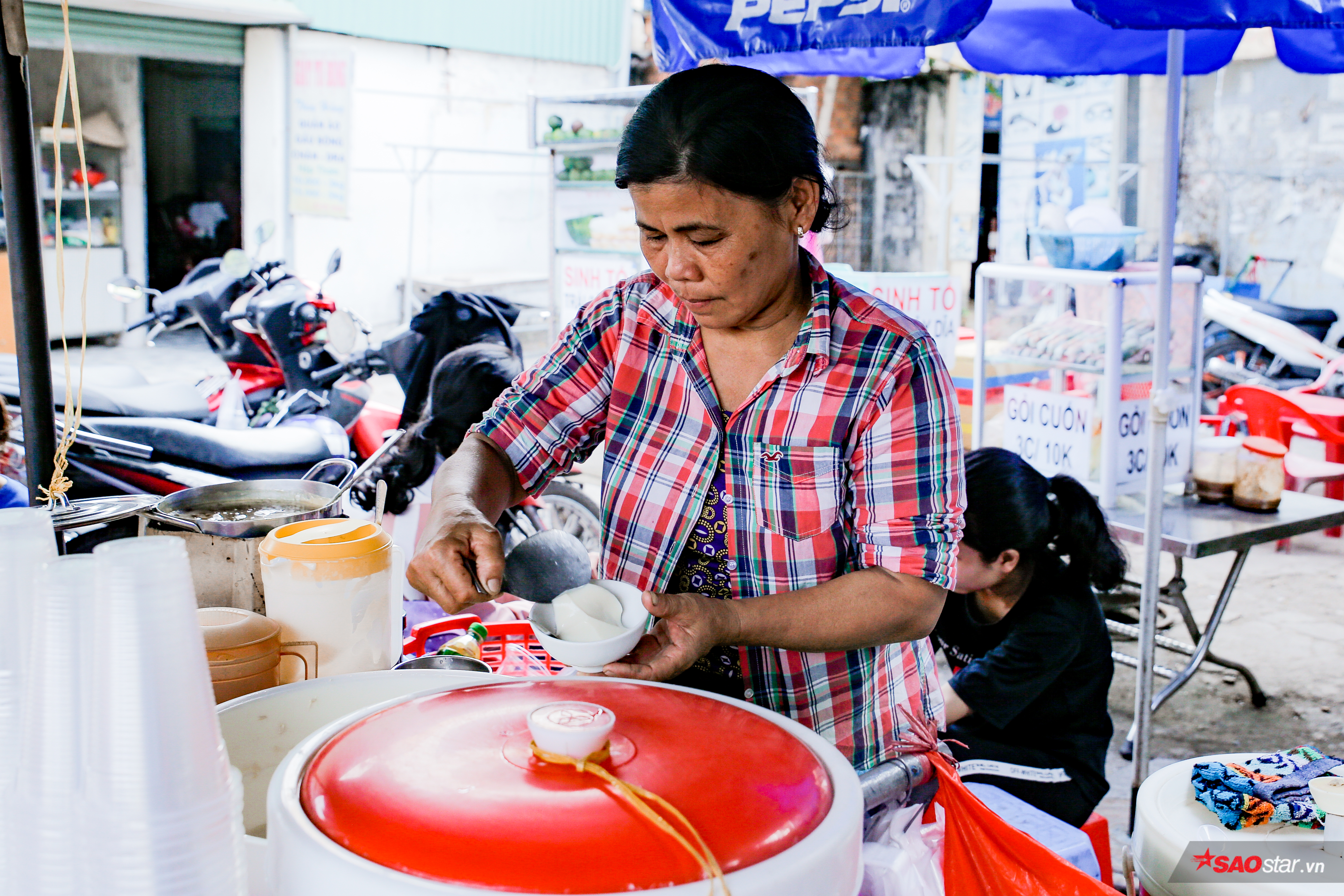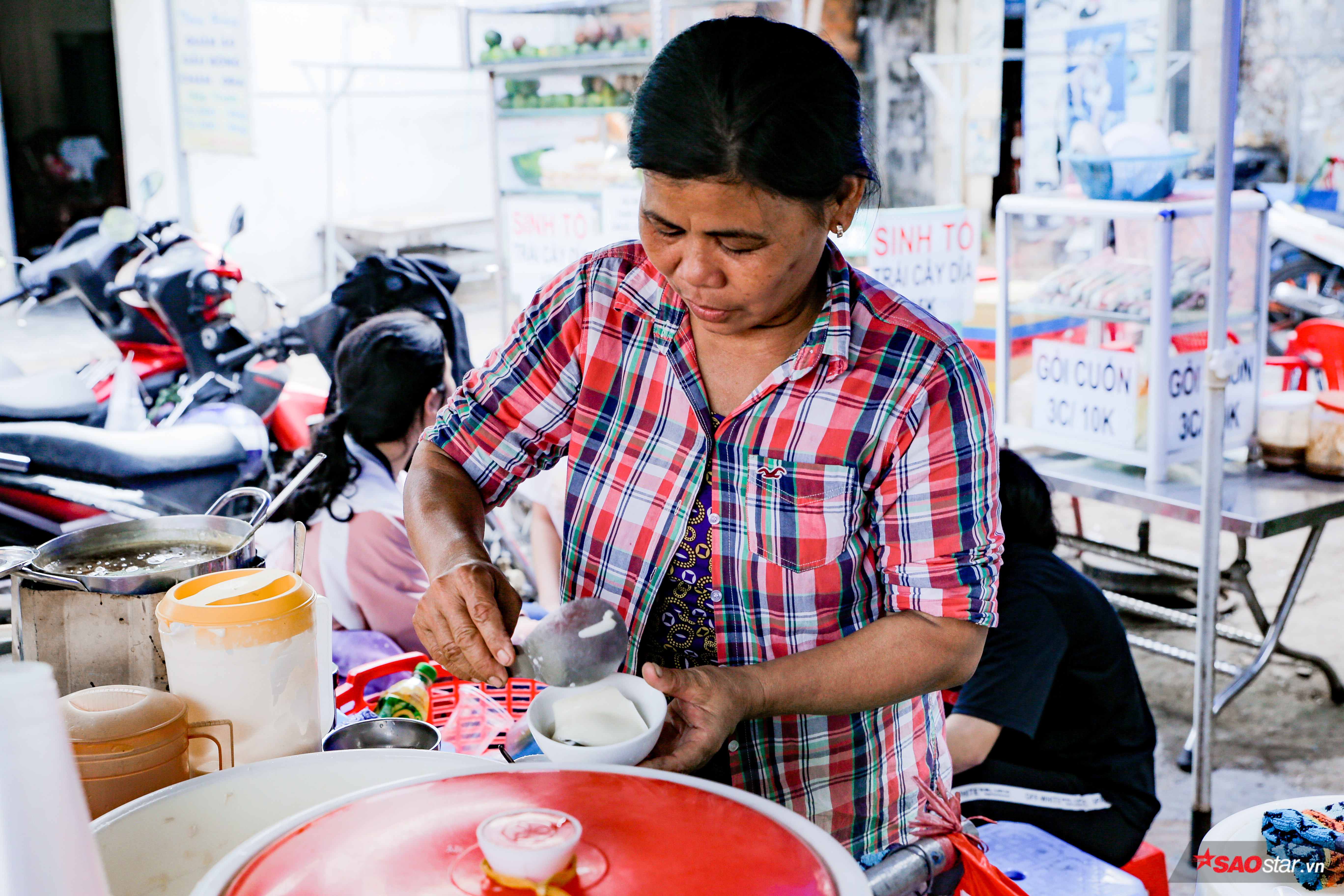 “Nào bán hết sớm thì cô về sớm được chút, bằng không thì cũng 10h đêm mới dọn nghỉ con ơi”, cô Ái tâm sự. Quán đông khách, bàn ghế có thể thiếu chứ cô Ái nhất định chẳng để ai đợi lâu. Hết làm tàu hũ cho khách, cô lại quay sang tranh thủ rửa chén, ly để kịp cho khách đợt sau, đôi bàn tay linh hoạt cùng khuôn mặt khắc khoải ở lưng chừng tuổi 50 cứ thế tần tảo ngày này qua tháng nọ.