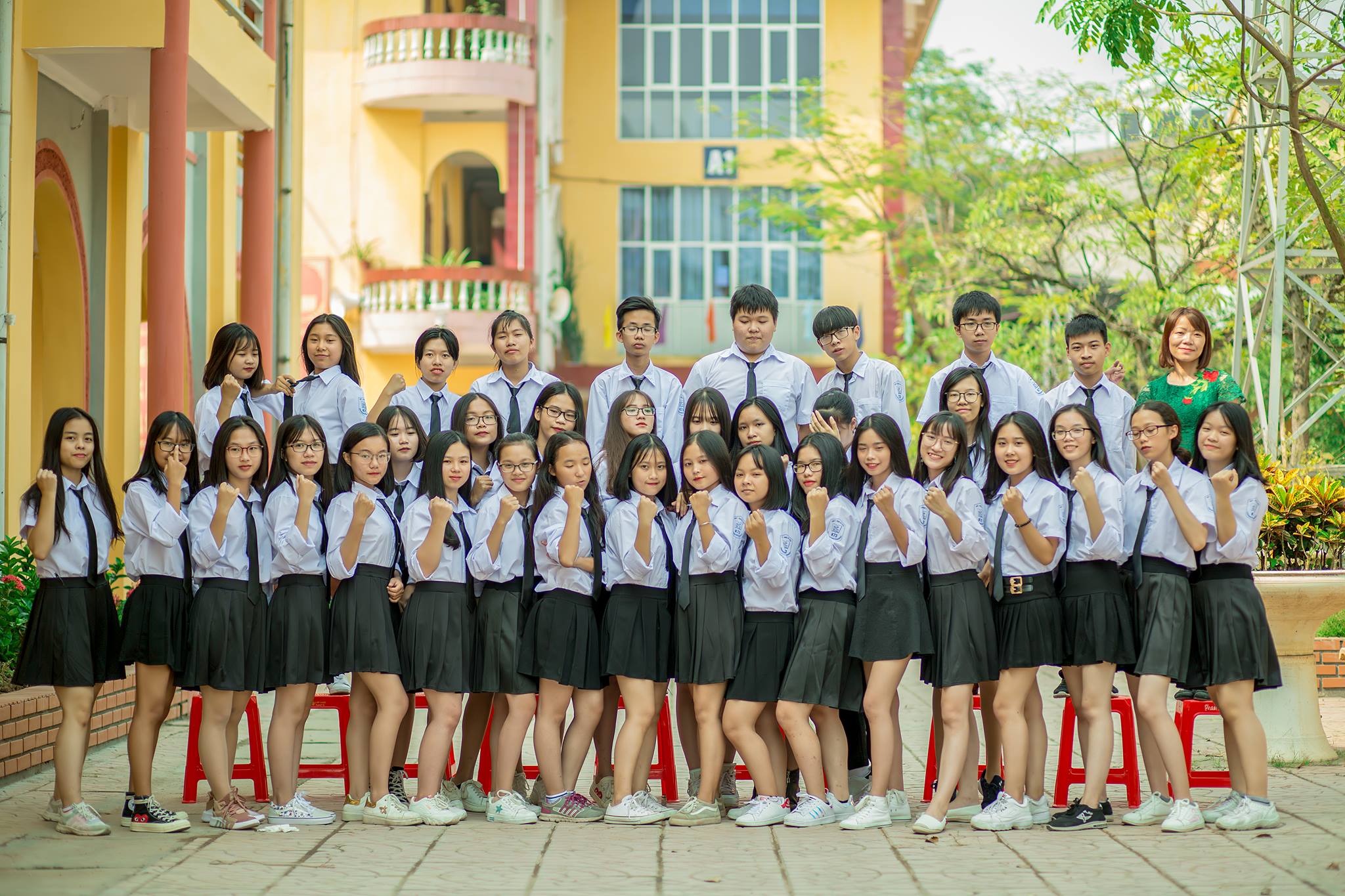 Chụp ảnh kỷ yếu ngay ở sân vận động trường cũng đủ đẹp lắm rồi.