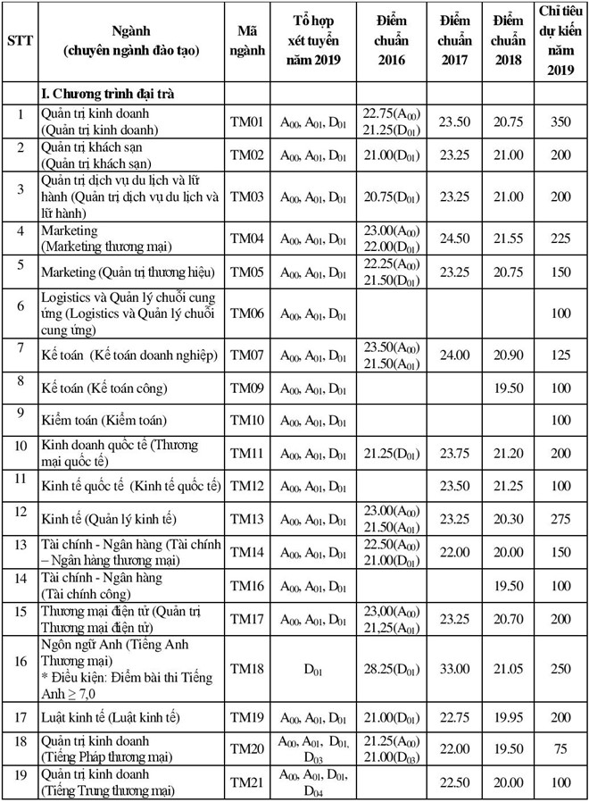 Đại học Thương mại vừa công bố phương án tuyển sinh đại học chính quy năm 2019.