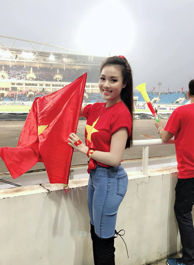 Mới đây, cộng đồng mạng lại xôn xao trước hình ảnh “hotgirl giảng viên” Âu Hà My nổi bật với màu áo cờ đỏ sao vàng đến cổ vũ đội tuyển Việt Nam trong trận chung kết lượt về.