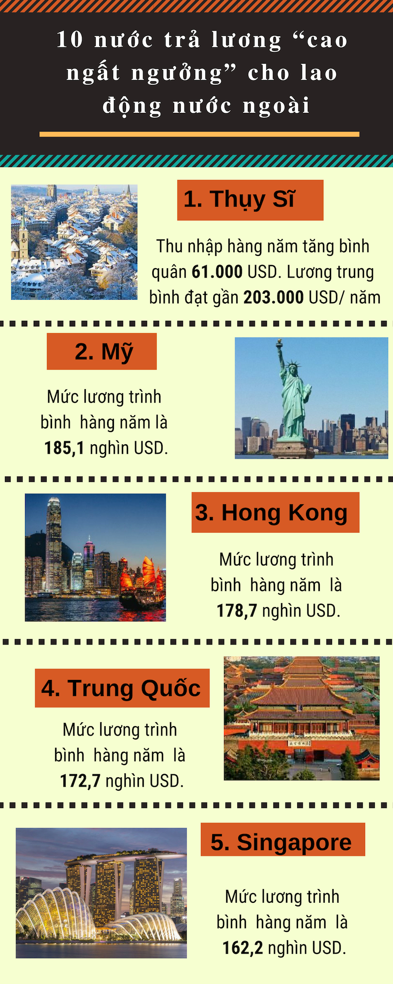 Mới đây HSBC vừa công bố danh sách 10 quốc gia trả lương cao nhất trên thế giới cho lao động nước ngoài. Những kết quả này dựa trên kết luận từ khảo sát thường niên về lao động làm việc tại nước ngoài - Expat Explorer.