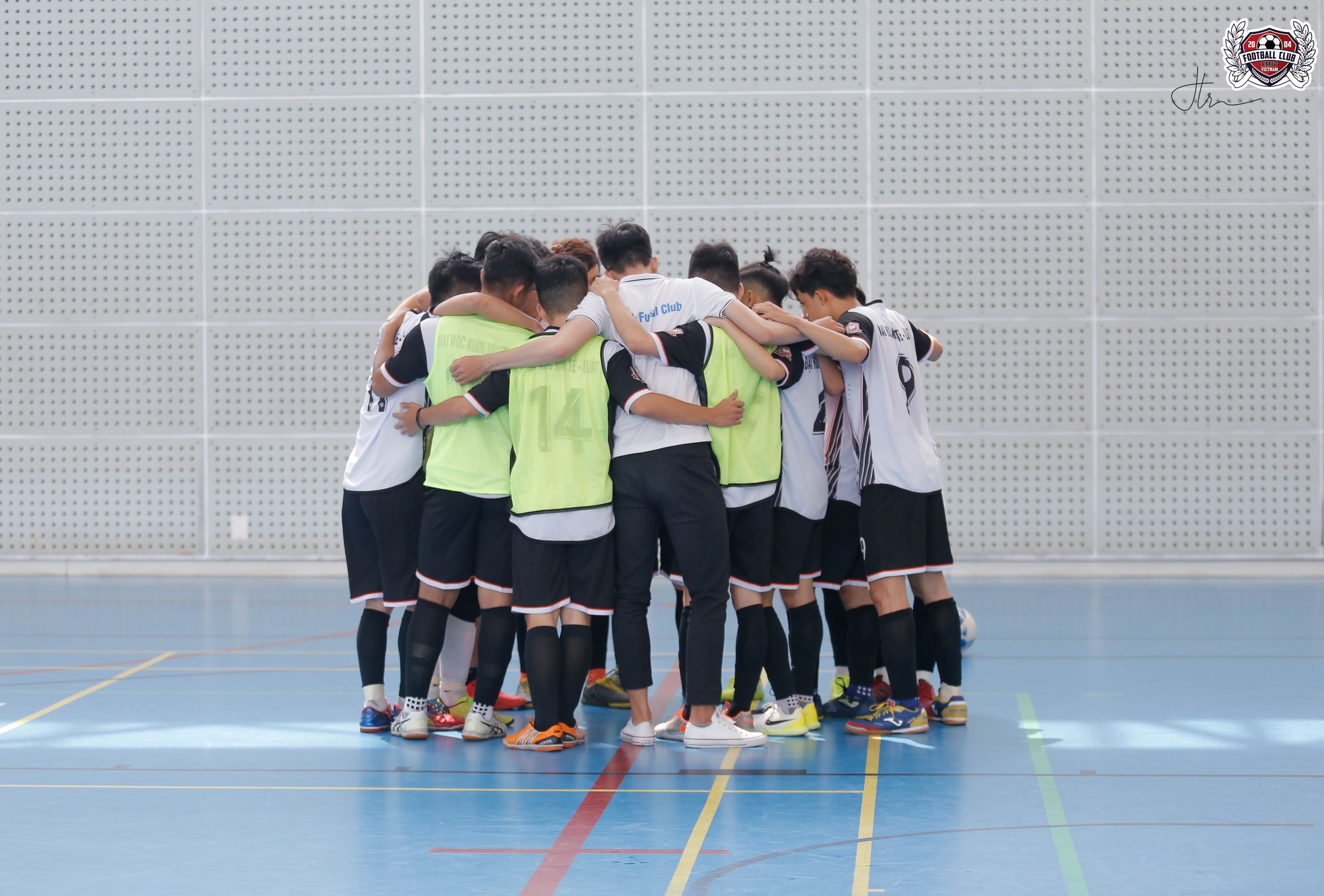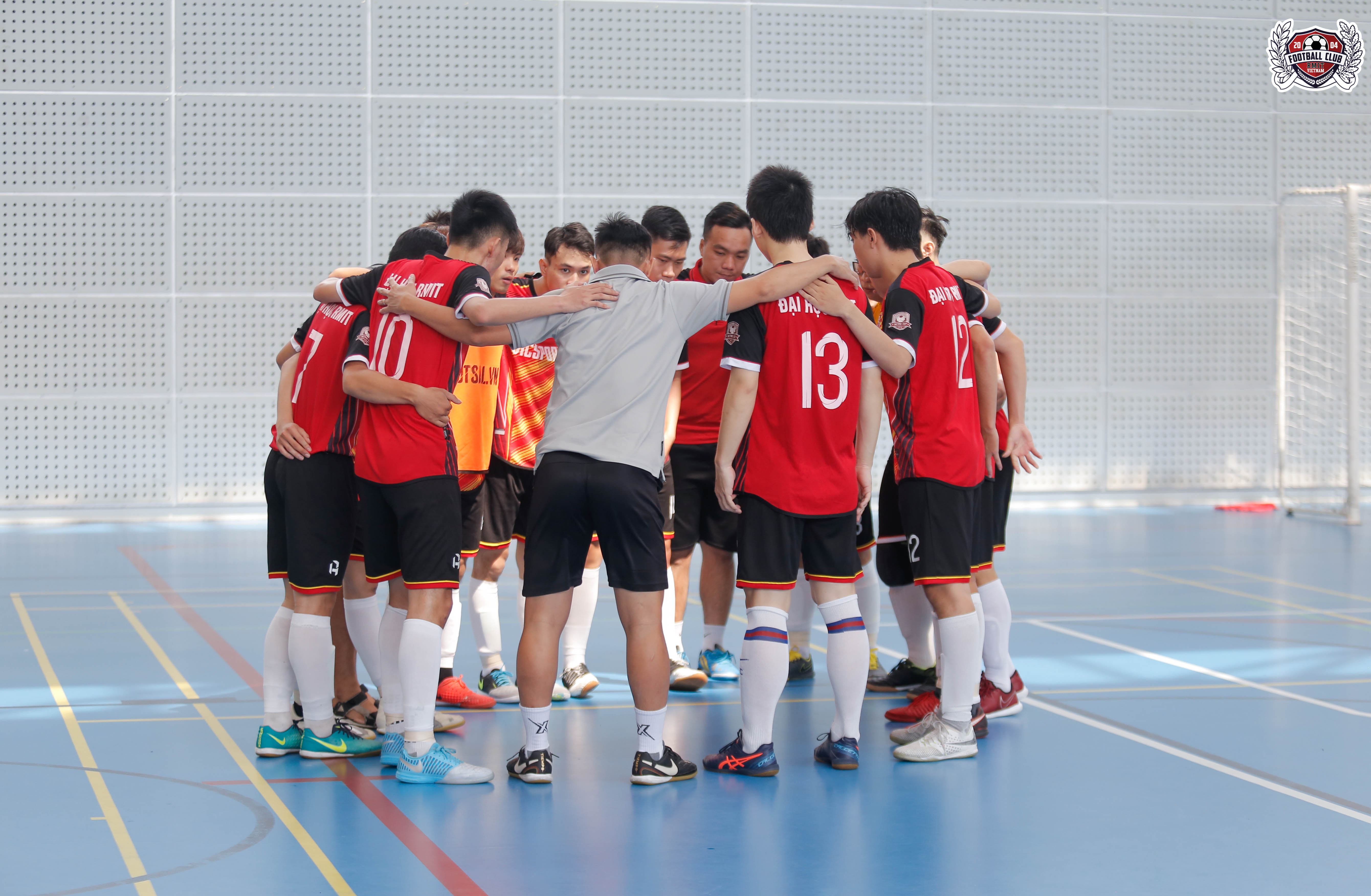 Đội bóng ĐH RMIT tiếp lửa tinh thần lẫn nhau trước trận đấu.