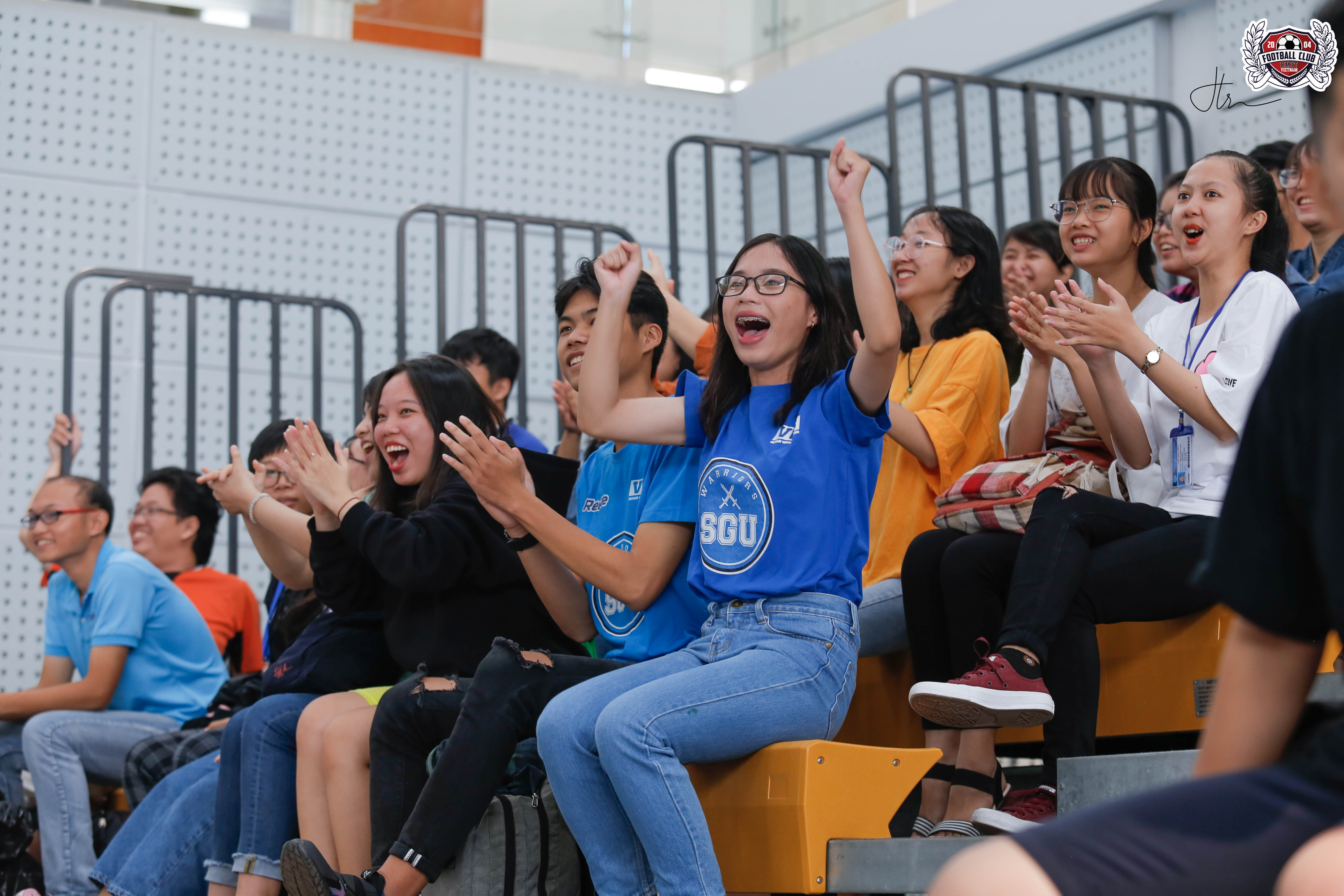 Giờ nghỉ trưa trước khi bắt đầu trận đấu chung kết chứng kiến sự sôi động đến ngộp thở từ khu vực khán đài. Trước thềm trận đấu giữa ĐH Sài Gòn với Văn Lang, đông đảo cổ động viên đến từ đội Sài Gòn đã cùng nhau hô vang tên đội bóng và cùng nhau cổ vũ đến hết ga hết lửa.
