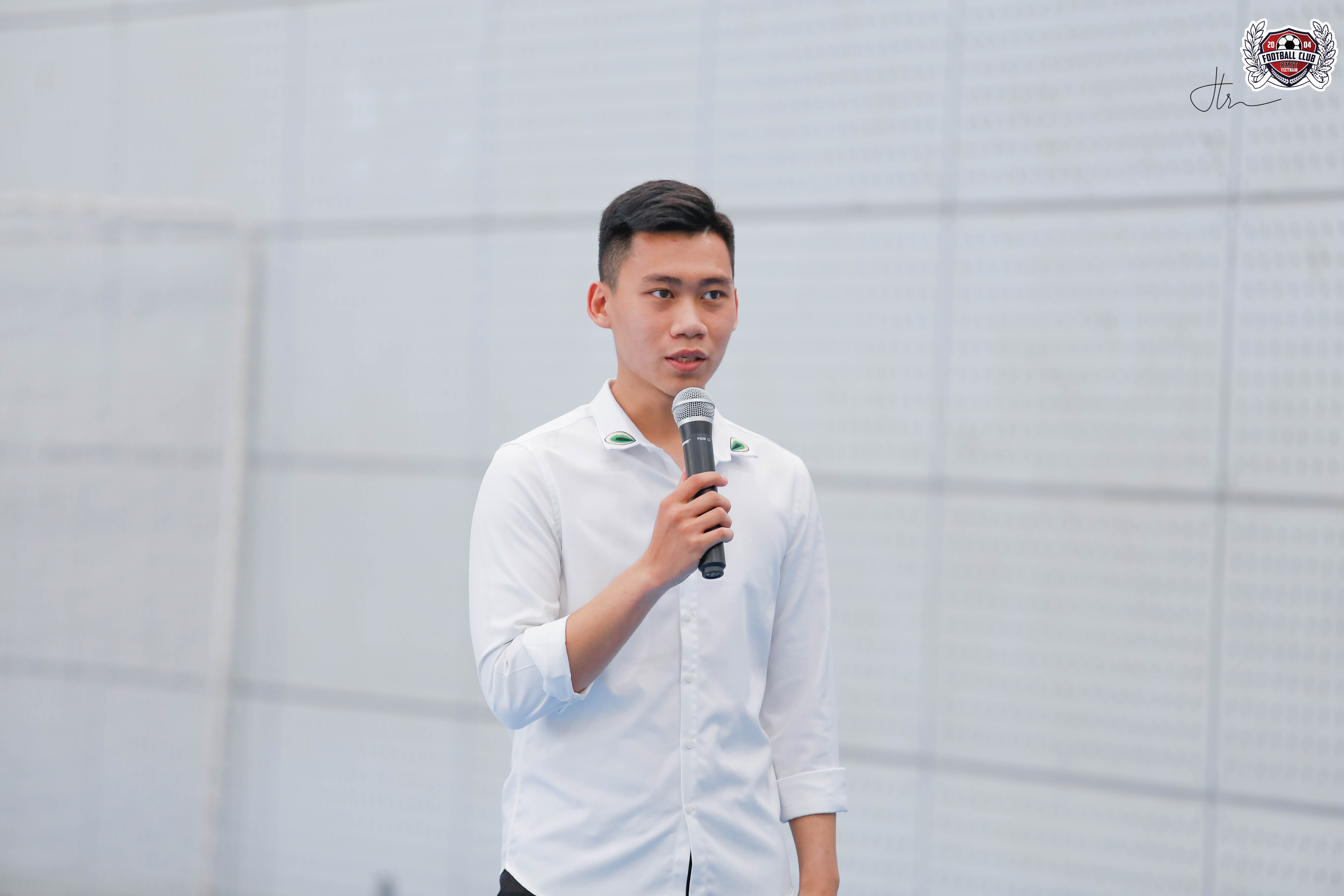 Anh Đoàn Hiếu Nghĩa, Chủ nhiệm CLB Bóng đá Sinh viên Đại học Quốc tế RMIT Việt Nam phát biểu tại lễ bế mạc của giải đấu.