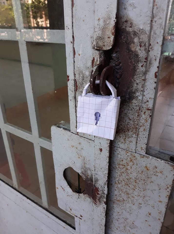 Cụ thể, học sinh lớp bị mất ổ khóa kể trên đã nghĩ ra cách làm khóa mới… bằng giấy. Chiếc khóa giấy này được cắt tỉa y như thật. Chỉ tiếc mỗi một chỗ là kẻ trộm mà cố tình “cá kiếm” thì có lẽ sáng hôm sau, ngay cả bàn ghế trong lớp e là cũng không còn.