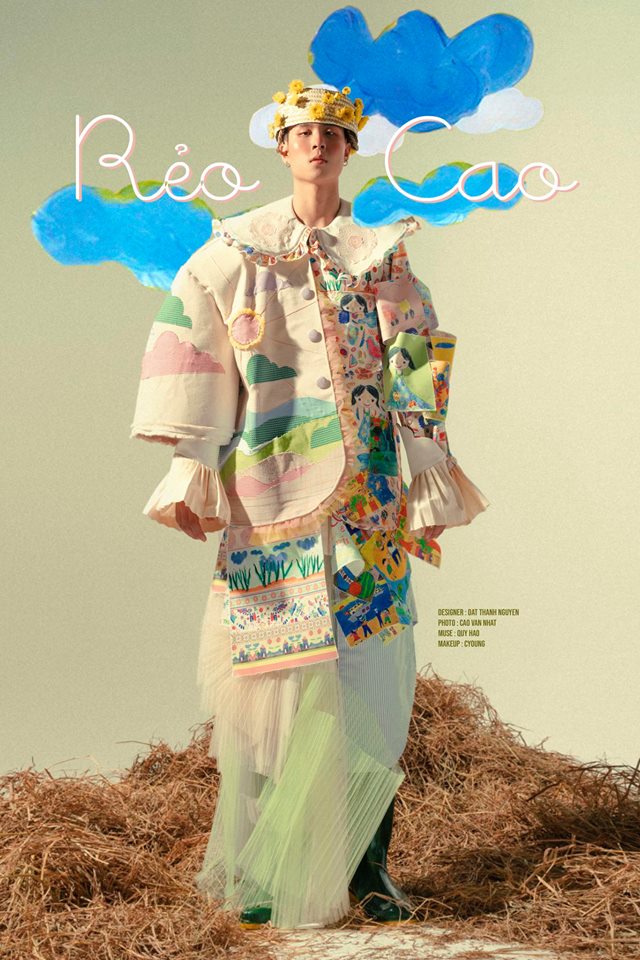 Thiết kế của Đạt khi kết hợp với những hoạ tiết nổi bật của dân tộc H'Mông mang lại cái nhìn đầy màu sắc và rực rỡ. “Rẻo Cao” là 2 tiếng chỉ đầy đủ vừa vặn cảm xúc của mình đặt vào đồ án này.