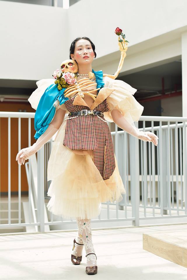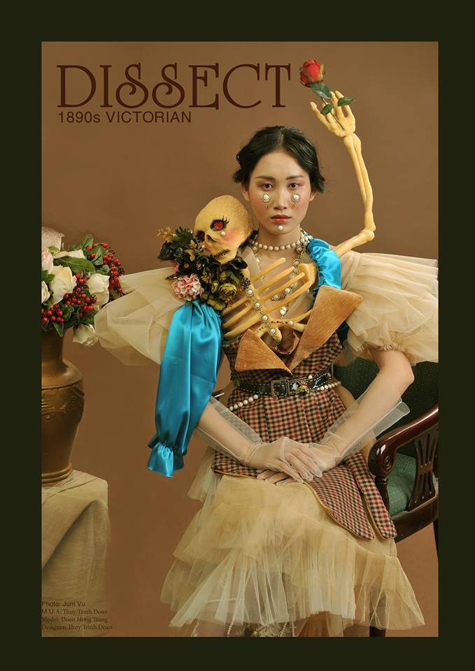 Trinh sáng tạo BST này khi kết hợp giữa ý tưởng từ cấu trúc bộ xương người cùng phong cách thời Victorian (1890).