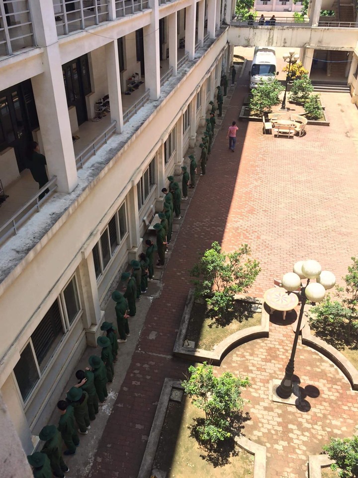 Hình phạt khá đa dạng như: đứng lên ngồi xuống, chạy 10 vòng quanh sân, phạt đứng nắng, đứng mưa hay phạt lao động là tùy theo thầy quản lí của đại đội bạn. Mới đây, trên mạng xã hội vừa truyền tay nhau hình ảnh khiến nhiều người vừa thương vừa buồn cười. Được biết, một đại đội đang học tập tại khu quân sự Hòa Lạc đã bị phạt “chào tường” giữa trưa nắng do vi phạm kỉ luật chung.Cụ thể, vào giờ ngủ trưa đại đội này đã không chịu ngủ mà hát nên đã bị các thầy phạt đứng giữa trưa nắng để cảnh cáo.