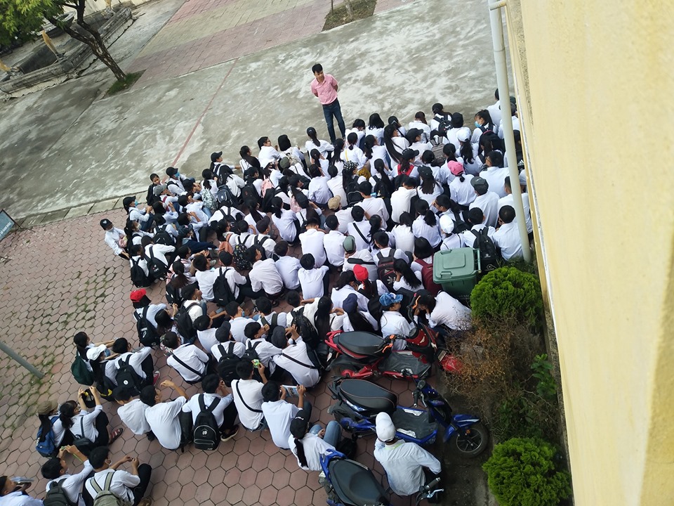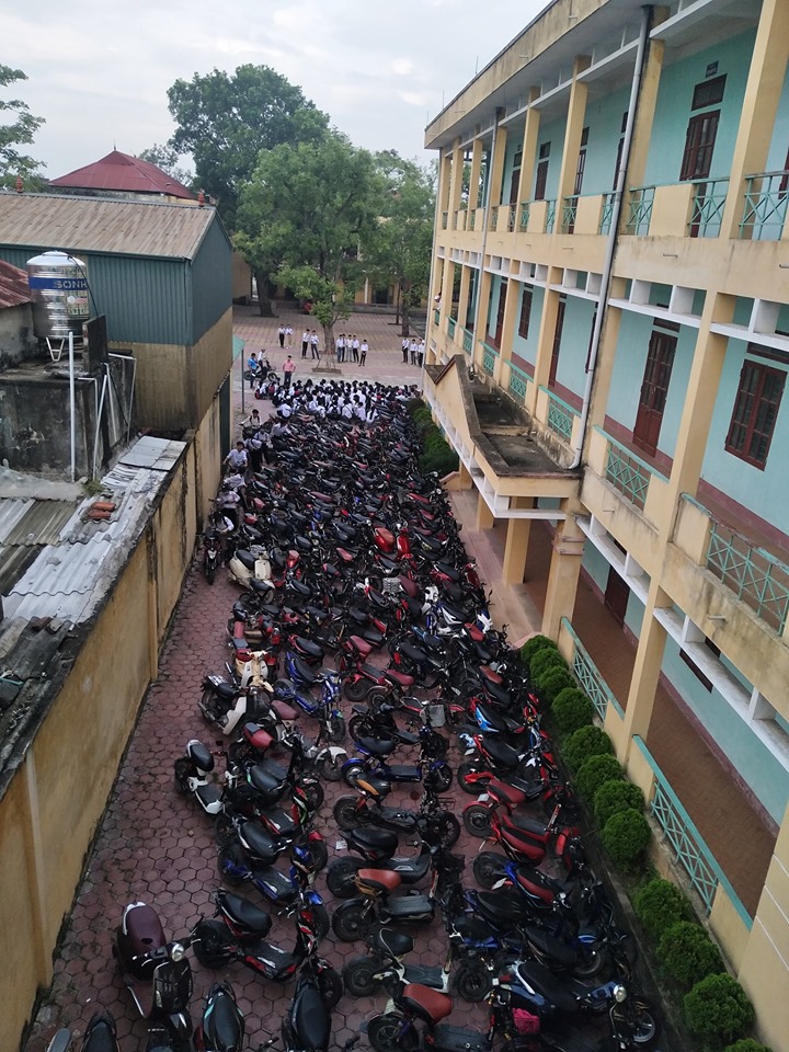 Hình ảnh trông vừa đáng thương vừa buồn cười. Ai nấy ngồi co ro cúp rúp vào một góc vì sợ thầy trách mắng còn xe đạp điện thì cũng bị xếp vào một góc. Chắc hẳn, các cô cậu này đang tim đập chân run vì không biết thầy sẽ xử lí mình thế nào đây?