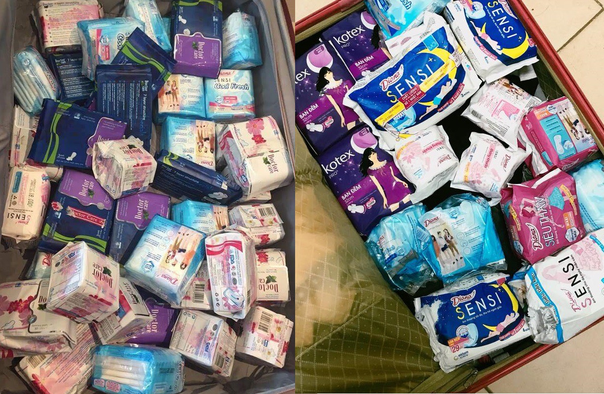 Những chiếc vali đựng đầy băng vệ sinh vì ở các nước, thứ mặt hàng thiết yếu cho con gái này vừa đắt mà các bạn ấy lại… dùng không quen.