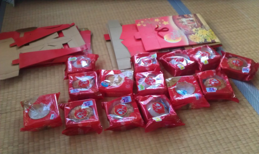 Bánh Trung thu cũng là một thức quà đặc trưng của đất nước mình, bởi vậy ai cũng cố mang theo nhiều nhiều, vừa làm quà kết bạn, vừa để ăn mỗi khi nhớ nhà.