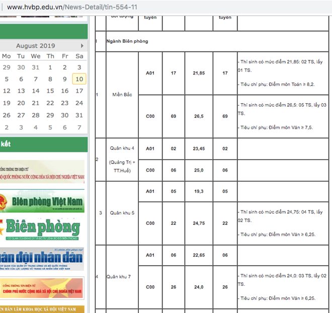 Theo Tuổi Trẻ Online, điểm chuẩn vào Học viện Biên phòng, điểm chuẩn ngành viên phòng dành cho thí sinh nam Quân khu 7 (T. có hộ khẩu thuộc khu vực tuyển sinh Quân khu 7) là 22,65.