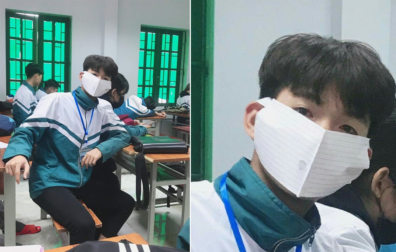 Mới đây, khi có thông báo học sinh phải mang khẩu trang khi đến lớp, một nam sinh đã nảy ra ý tưởng chế tạo ra chiếc khẩu trang có 1-0-2. Cụ thể, cậu bạn đã sử dụng giấy trắng để cắt, dán, tạo ra một chiếc khẩu trang y tế.