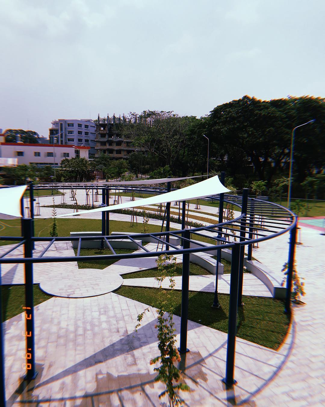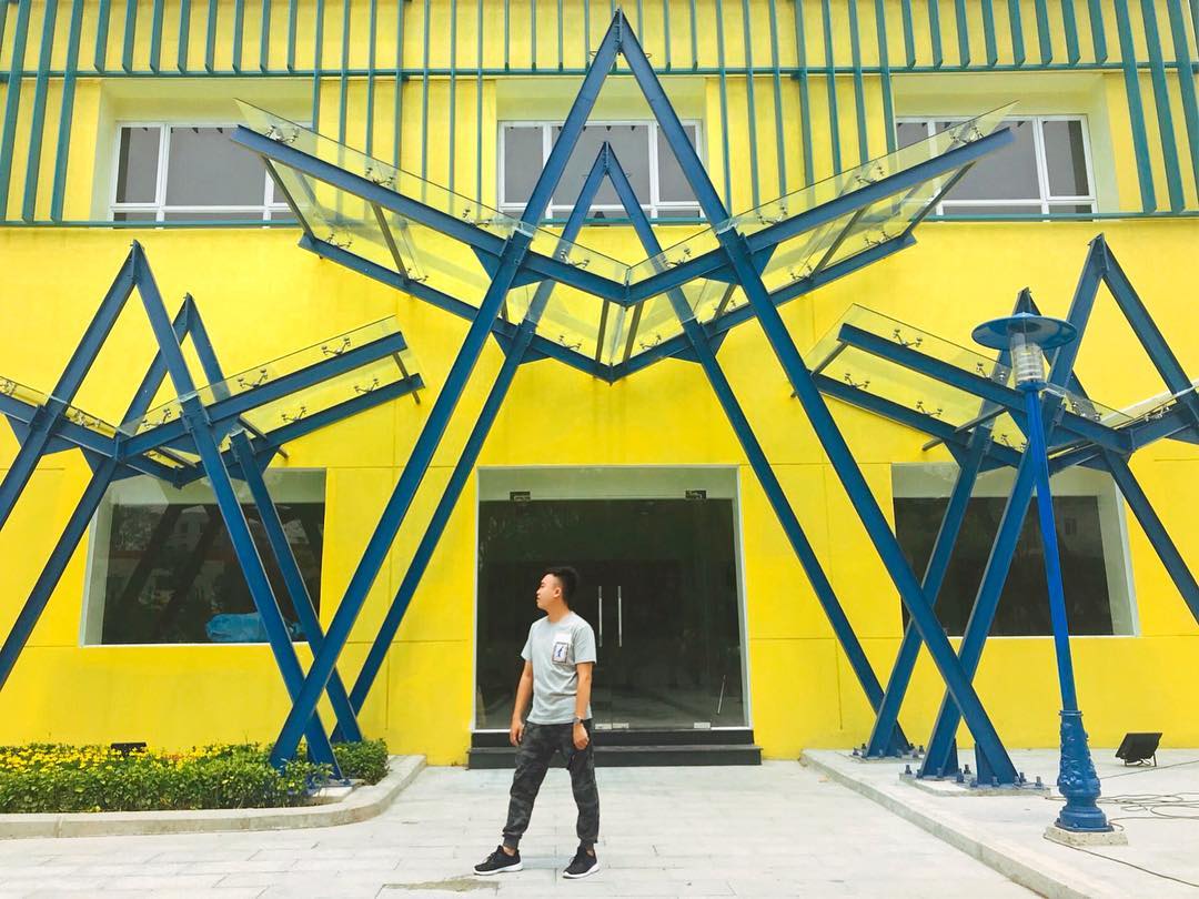 Bên ngoài trường là một mảng sân khá lớn, được tô điểm bởi các khung sắt uốn lượn một cách nghệ thuật, mà chỉ cần có chút góc nhìn là các bạn sinh viên đã thu về cho mình được hơn chục kiểu ảnh art rồi.