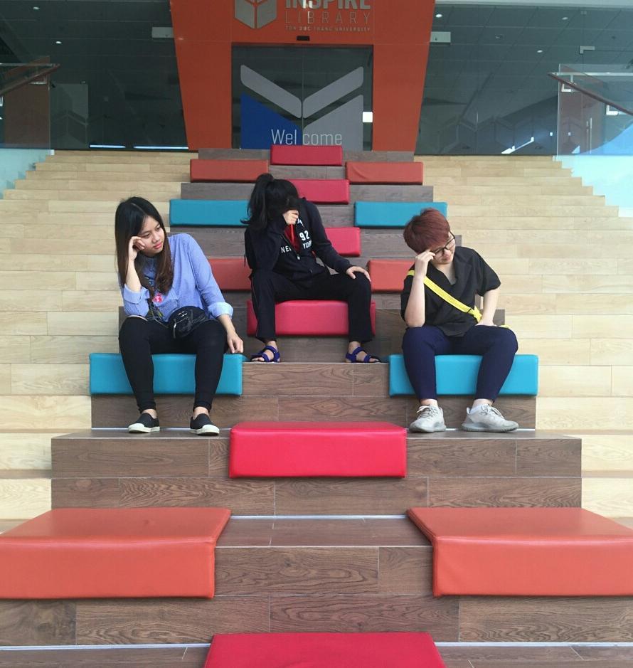 Bên cạnh đó, nhà trường còn rất tâm lí khi trang bị cho sinh viên thật nhiều bàn ghế, nội thất kiểu dáng hiện đại, thời thượng đủ để sống ảo mọi ngóc ngách.