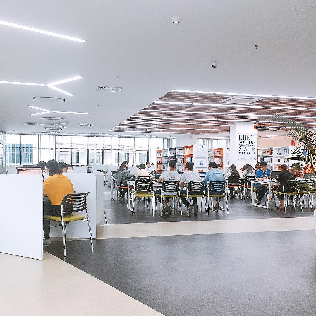 Chỉ riêng thư viện mới xây thôi cũng đã khiến sinh viên trường thích thú, mê mẩn, chăm chỉ đến tham khảo tư liệu hơn rồi này. Thư viện tại Tôn Đức Thắng không mang một vẻ trang nghiêm, bí bách, khô khan mà trái lại nơi đây là cả một bầu trời xinh xắn để các bạn tha hồ học hành và sống ảo. Thư viện được thiết kế với trần cao, tường áp kính hứng trọn nắng thiên nhiên hướng ra đường tạo cảm giác gần với thiên nhiên và thoáng đãng.