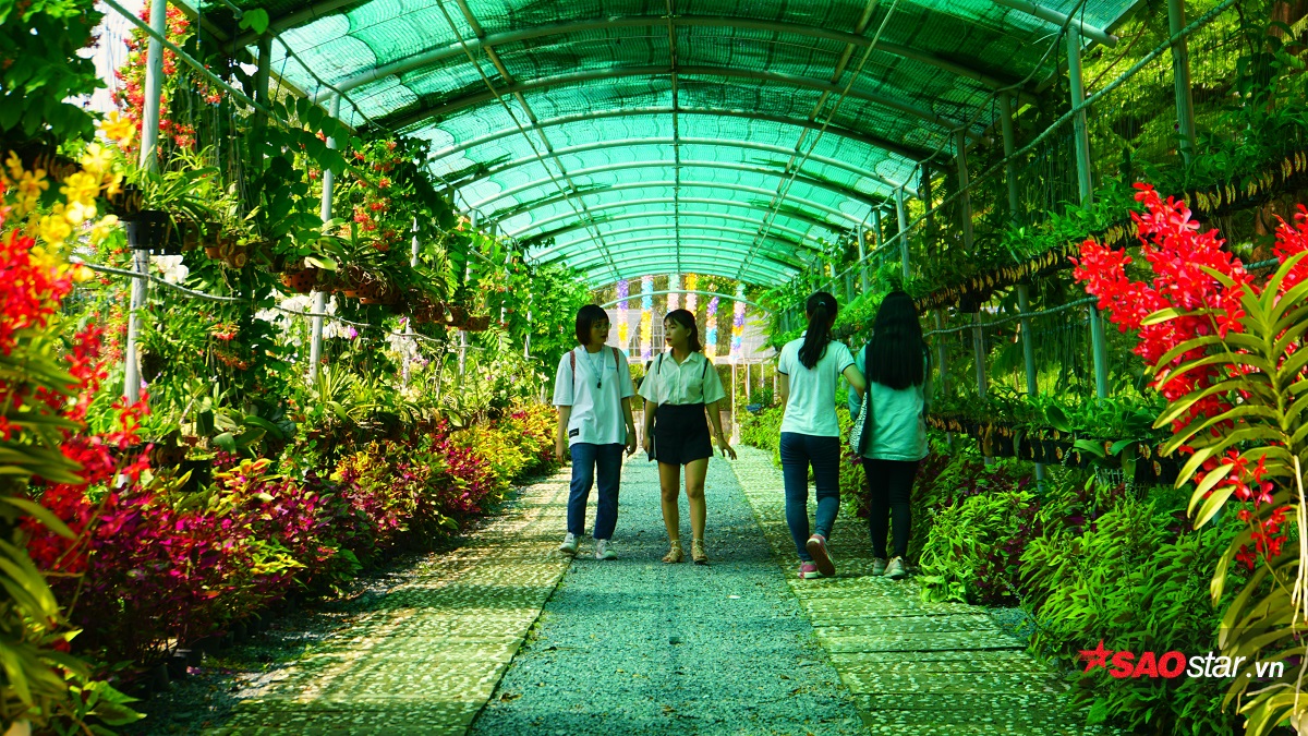 Khu vườn ươm với loài hoa lan đủ màu sắc.