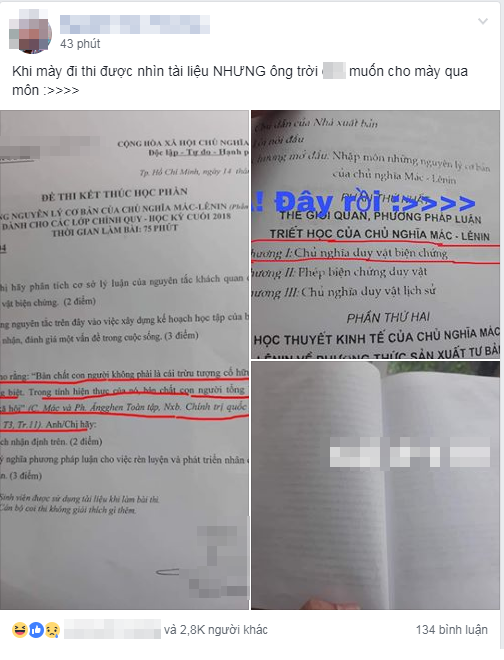 Chuyện thế này, trong giờ làm bài kiểm tra mở, tức là sinh viên được sử dụng tài liệu thi, anh chàng hí hửng đọc đề và chắc mẩm đáp án ở trong sách. Tâm trạng đang lên và mơ về ngày có kết quả điểm cao chót vót, thì ôi không. Trang sách bị lỗi mất chữ không phải ở đâu khác lại chính ở trang có đáp án câu hỏi đề kiểm tra.