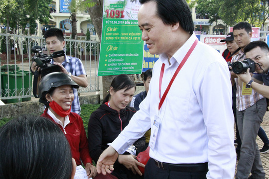 Bộ trưởng Bộ GD-ĐT Phùng Xuân Nhạ động viên phụ huynh của các thí sinh. Ảnh: Cao Nguyên (Báo Người Lao Động)