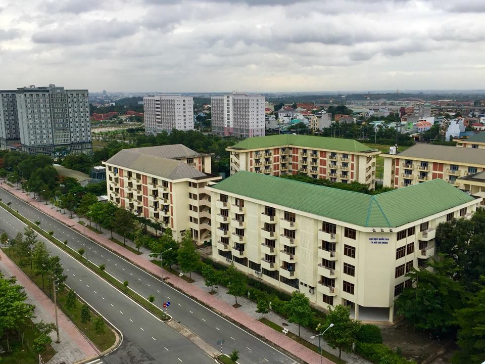 Nhìn từ trên cao, ký túc xá Đại học Quốc gia TP. Hồ Chí Minh tựa như một khu đô thị sầm uất nằm trong lòng của một thành phố hiện đại bậc nhất cả nước