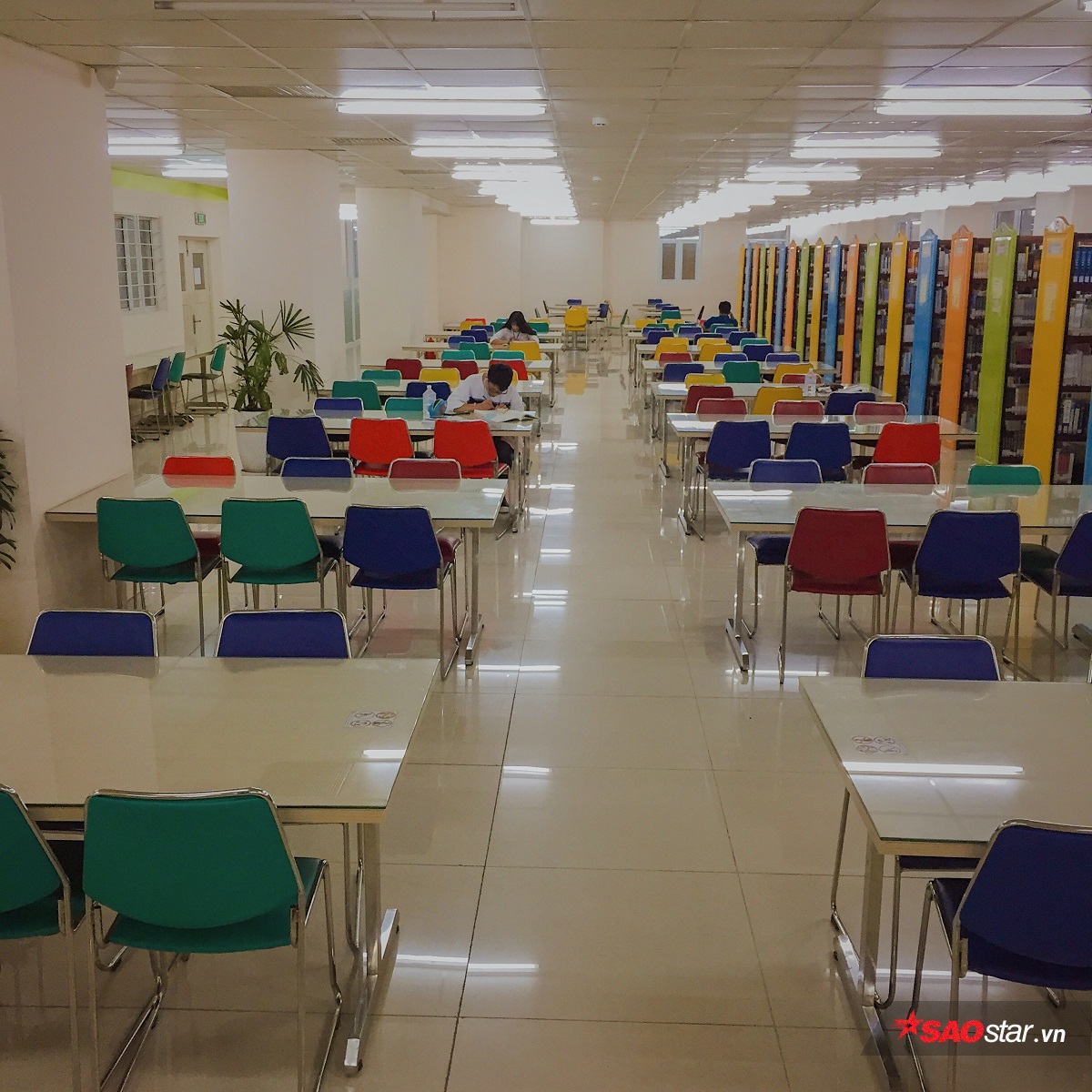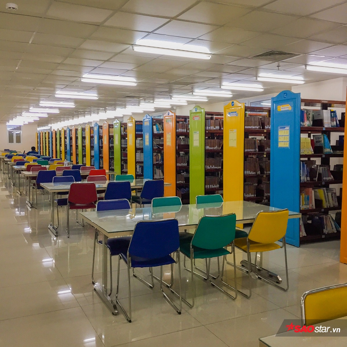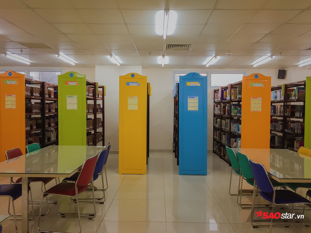 Một trong những khu vực thể hiện được đặc trưng màu sắc chủ đạo ấy chính là thư viện của ngôi trường này.