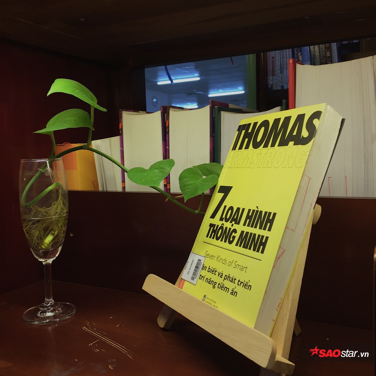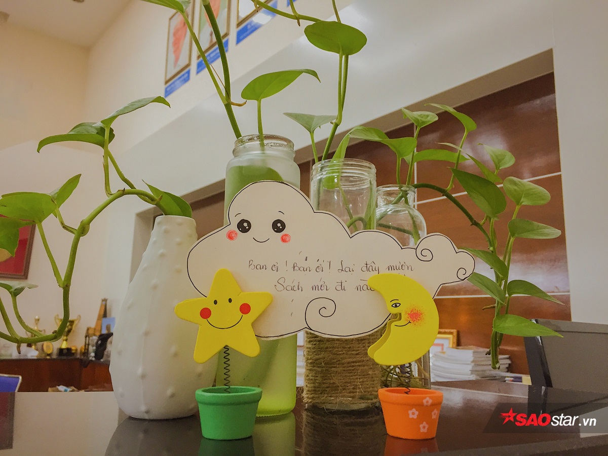 Không chỉ có sách, ở mỗi quầy đều được trang trí những chậu hoa xinh xắn.