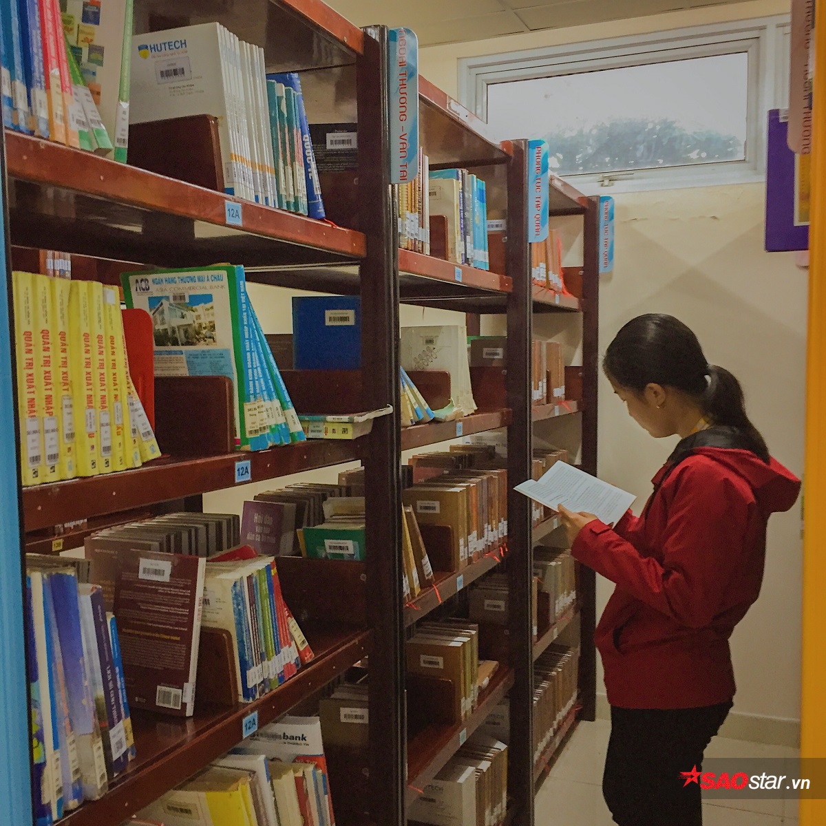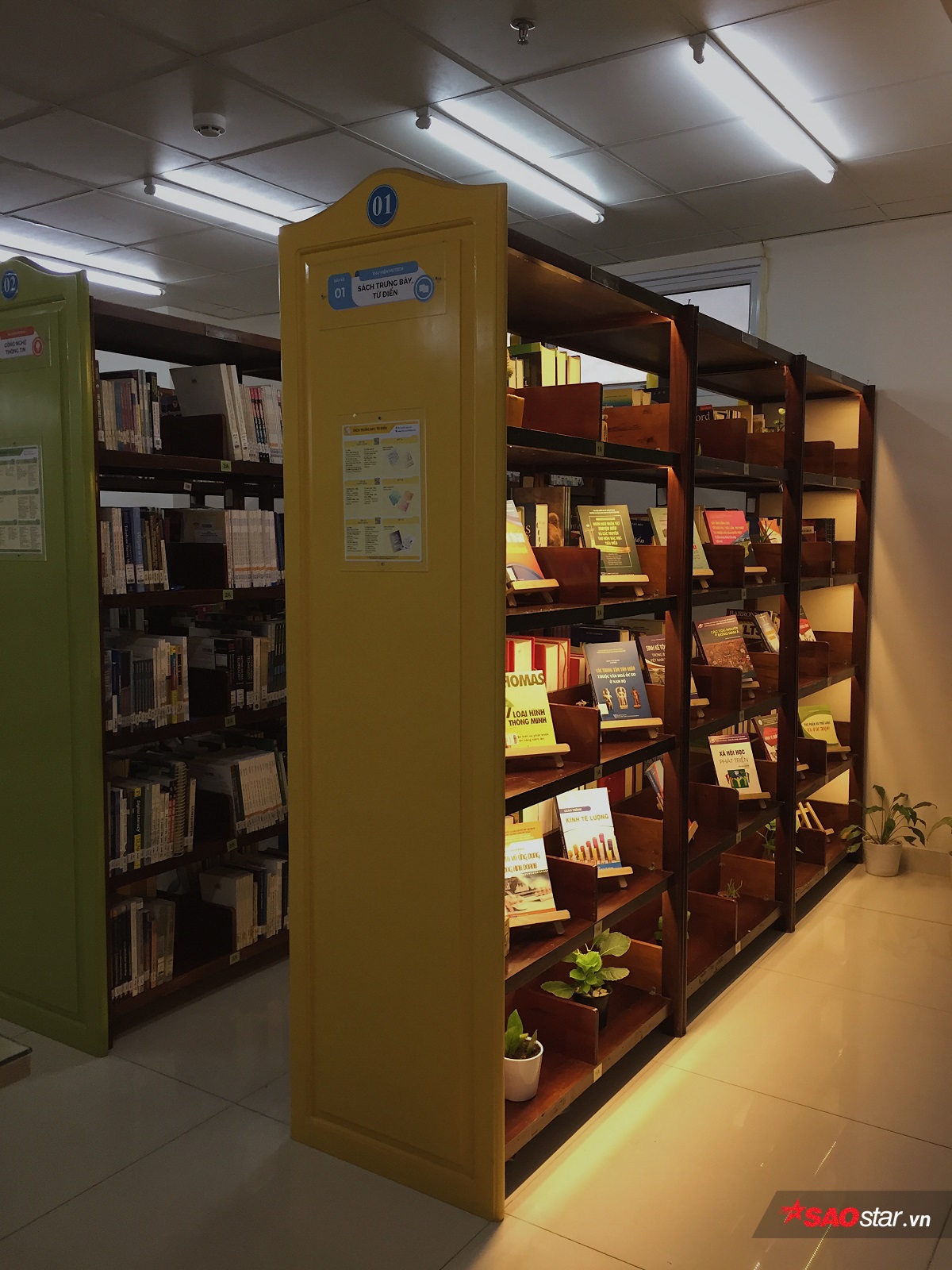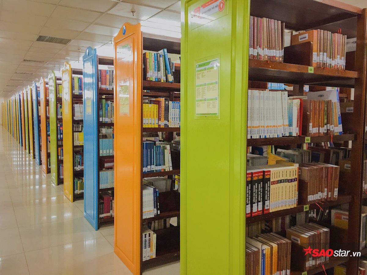 Ở mỗi tủ sách đều có những bảng hướng dẫn rõ ràng, giúp sinh viên dễ dàng tìm kiếm loại sách mong muốn.