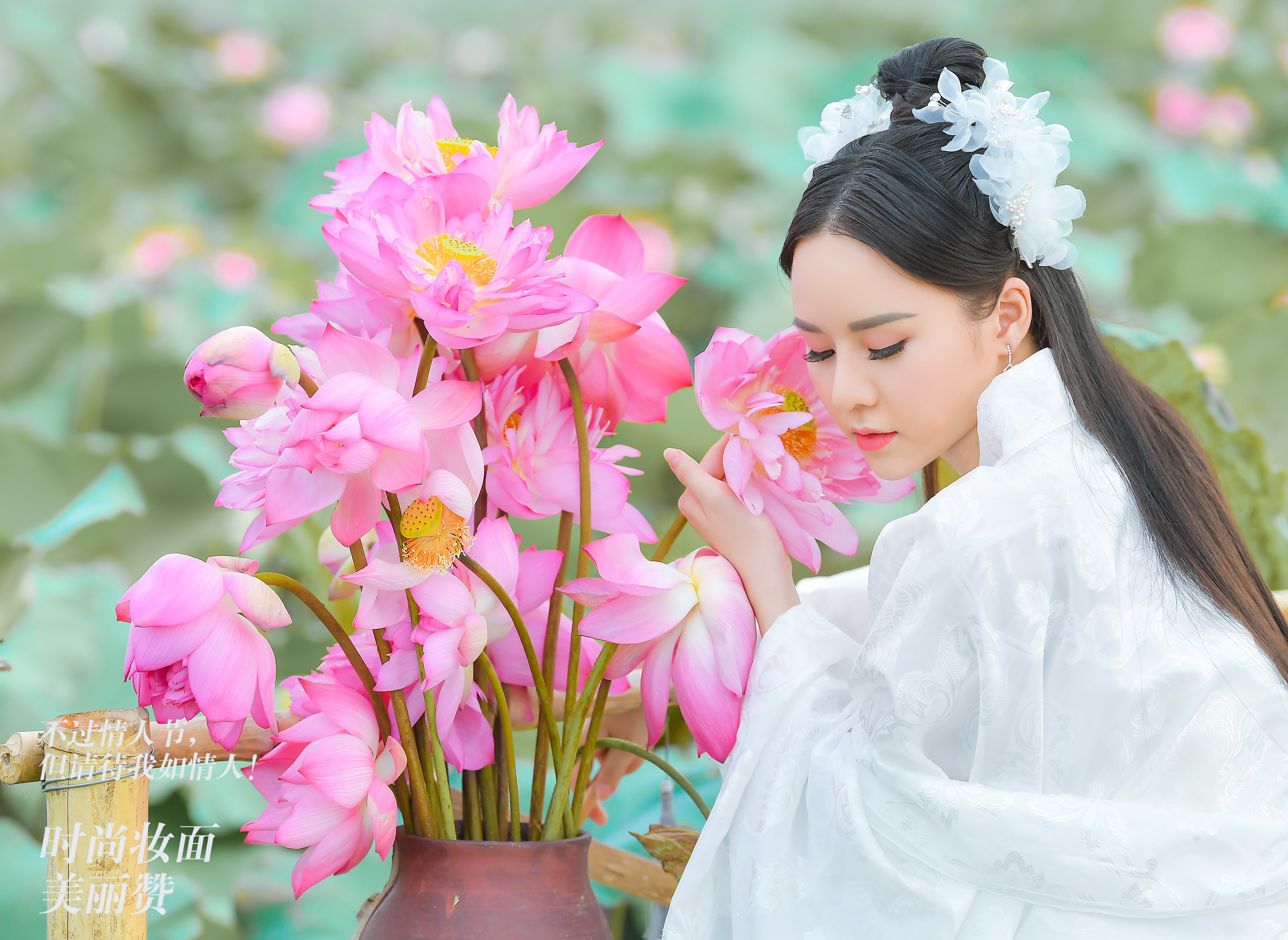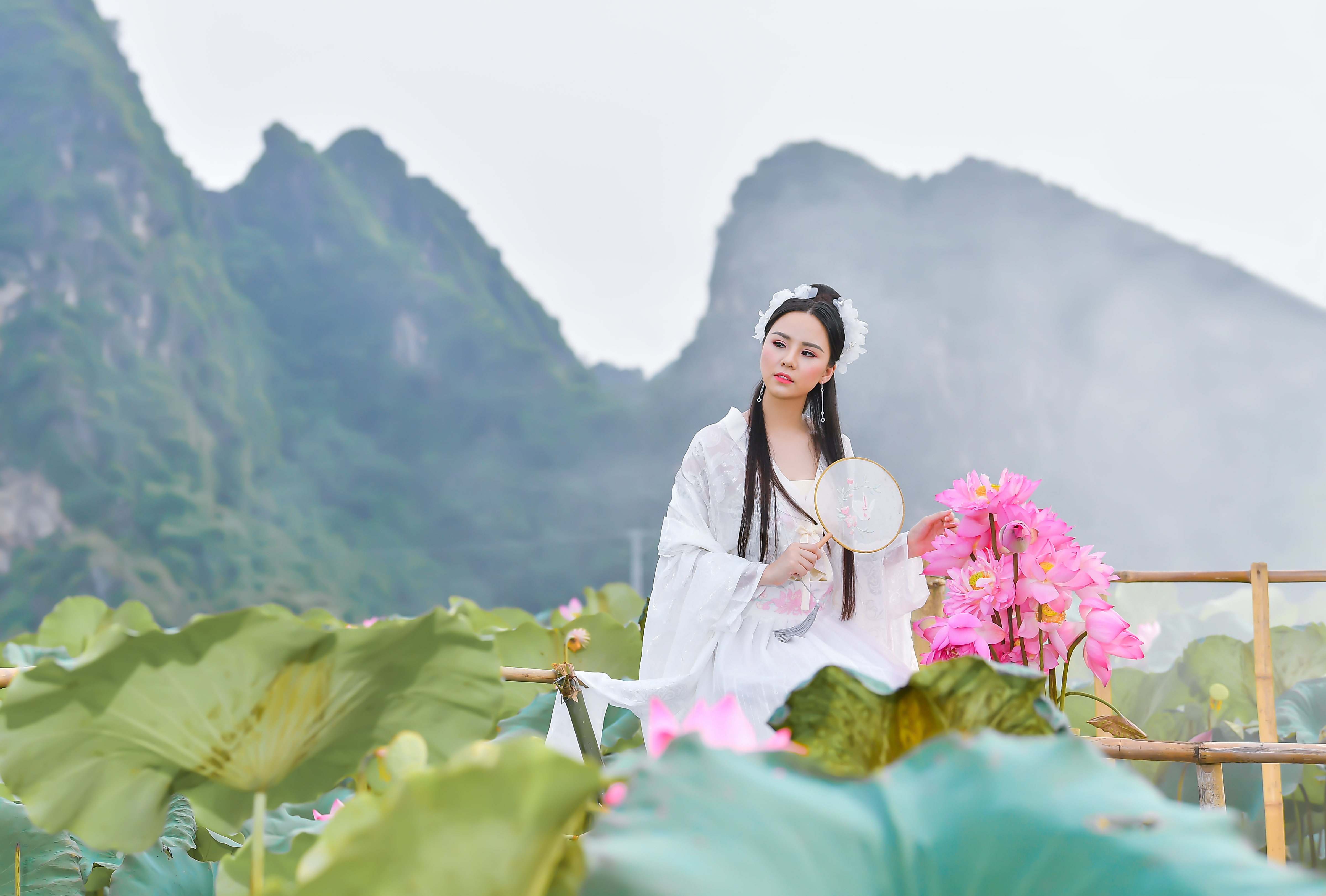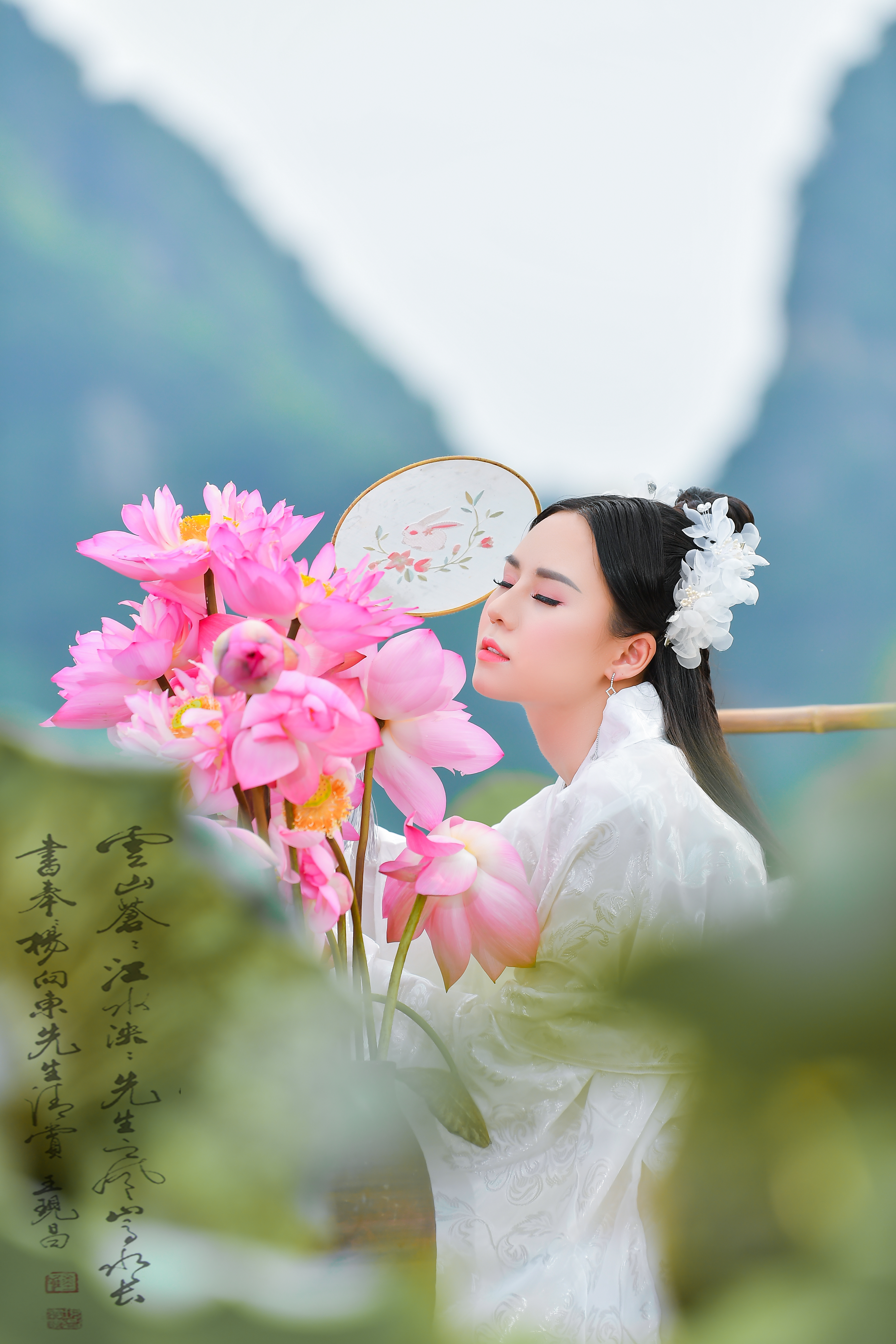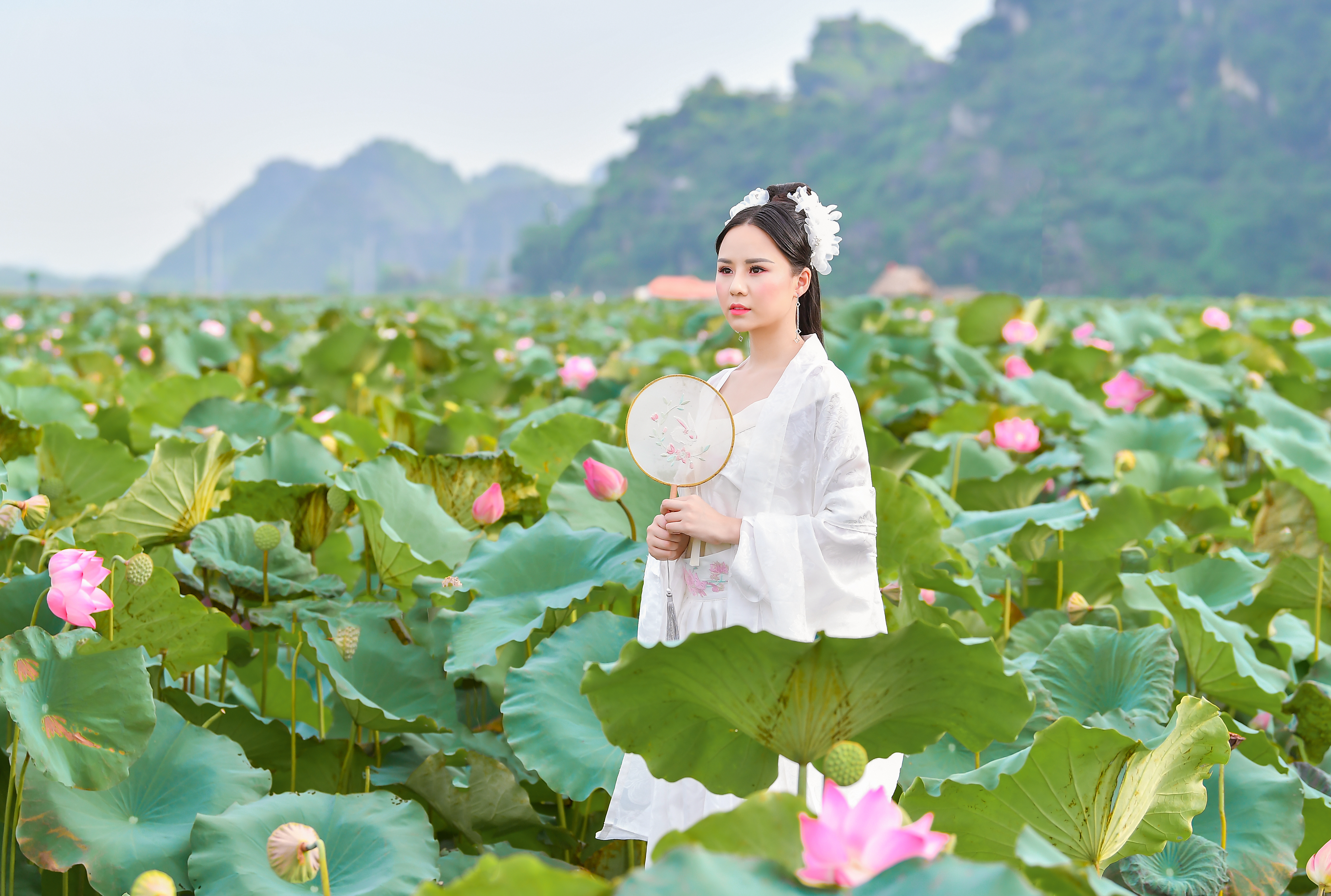 Nữ chính trong loạt ảnh bên sen sinh năm 1996, là một gương mặt mẫu ảnh quen thuộc với các nhiếp ảnh gia tại Hà Nội.