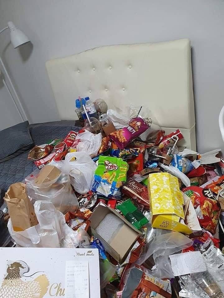 Còn đây là phòng ngủ của 1 đứa con gái? Thật khó tin? Rác thải từ đồ ăn vặt được chất thành đống trông thật kinh hoàng. Ảnh: Nguyễn Chang