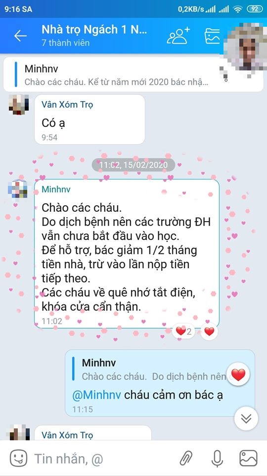 Còn chủ nhà này thì dành tặng mỗi phòng 200.000 đồng để mua khẩu trang như một phần để chia sẻ cùng sinh viên trước nạn dịch lần này