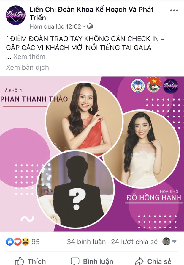 Việt Anh viết: “Một phần đi buổi chào khoa ngày hôm nay cũng do tò mò là ca sĩ bí mật là ai. Ở lại đến cuối chẳng có gì cả, cá nhân mình là sinh viên thuộc khoa Kế hoạch và Phát triển nhưng thực sự vô cùng thất vọng với cái cách thức truyền thông này”.