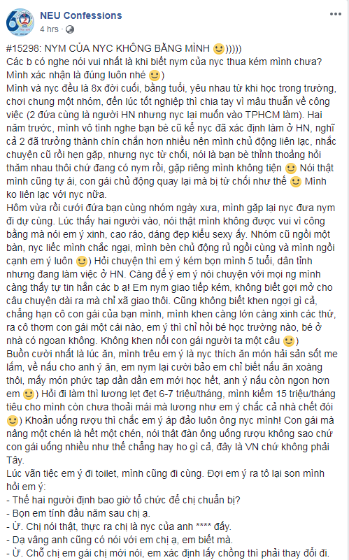 Câu chuyện đang gây bão trên fanpage NEU Confession.