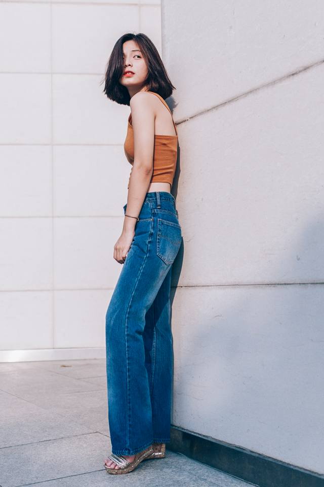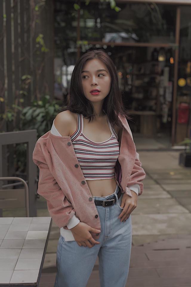 Phong cách vintage được cô nàng thể hiện xuất sắc khi chỉ cần ăn mặc giản dị, trang điểm nhẹ đã xinh hết phần thiên hạ.