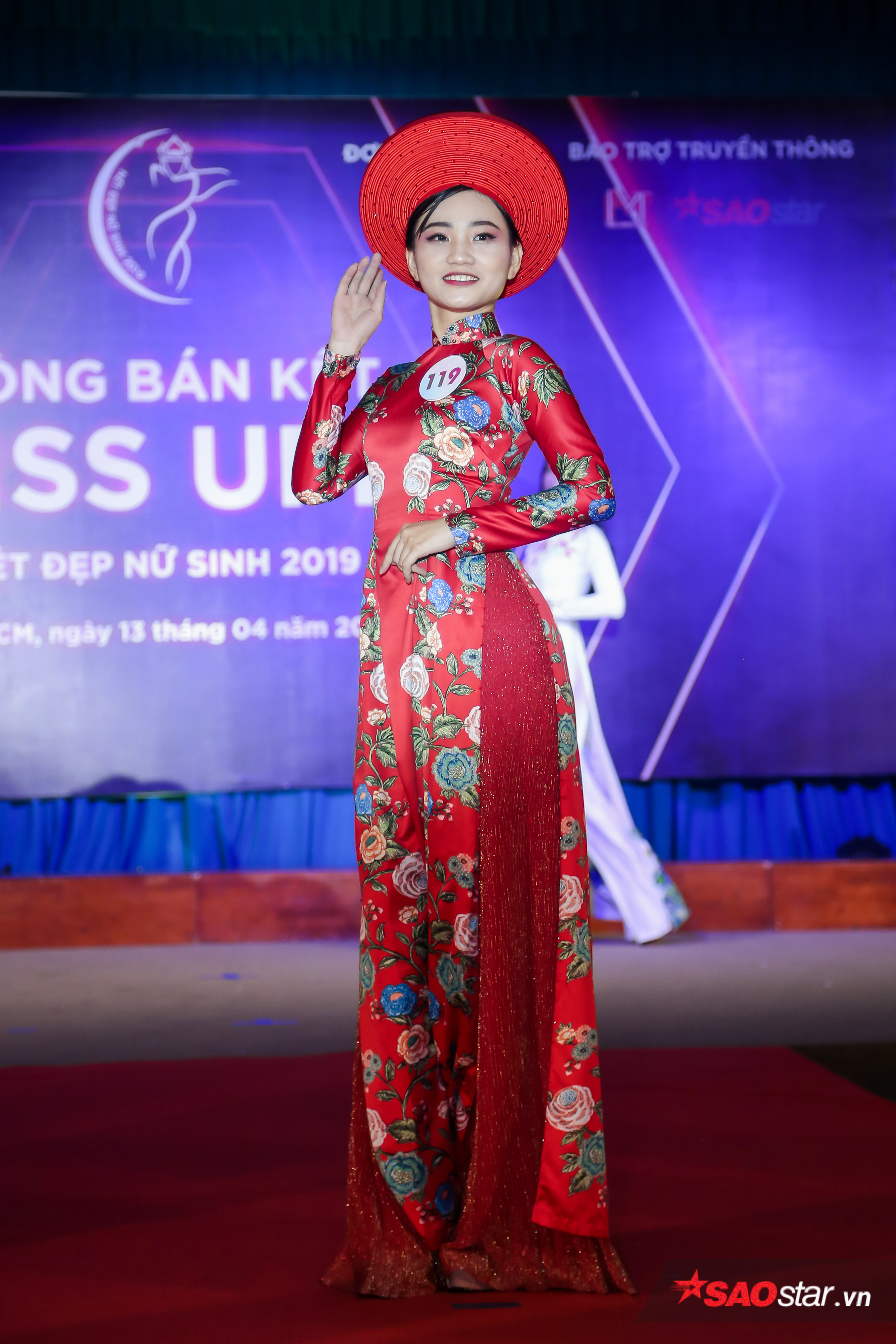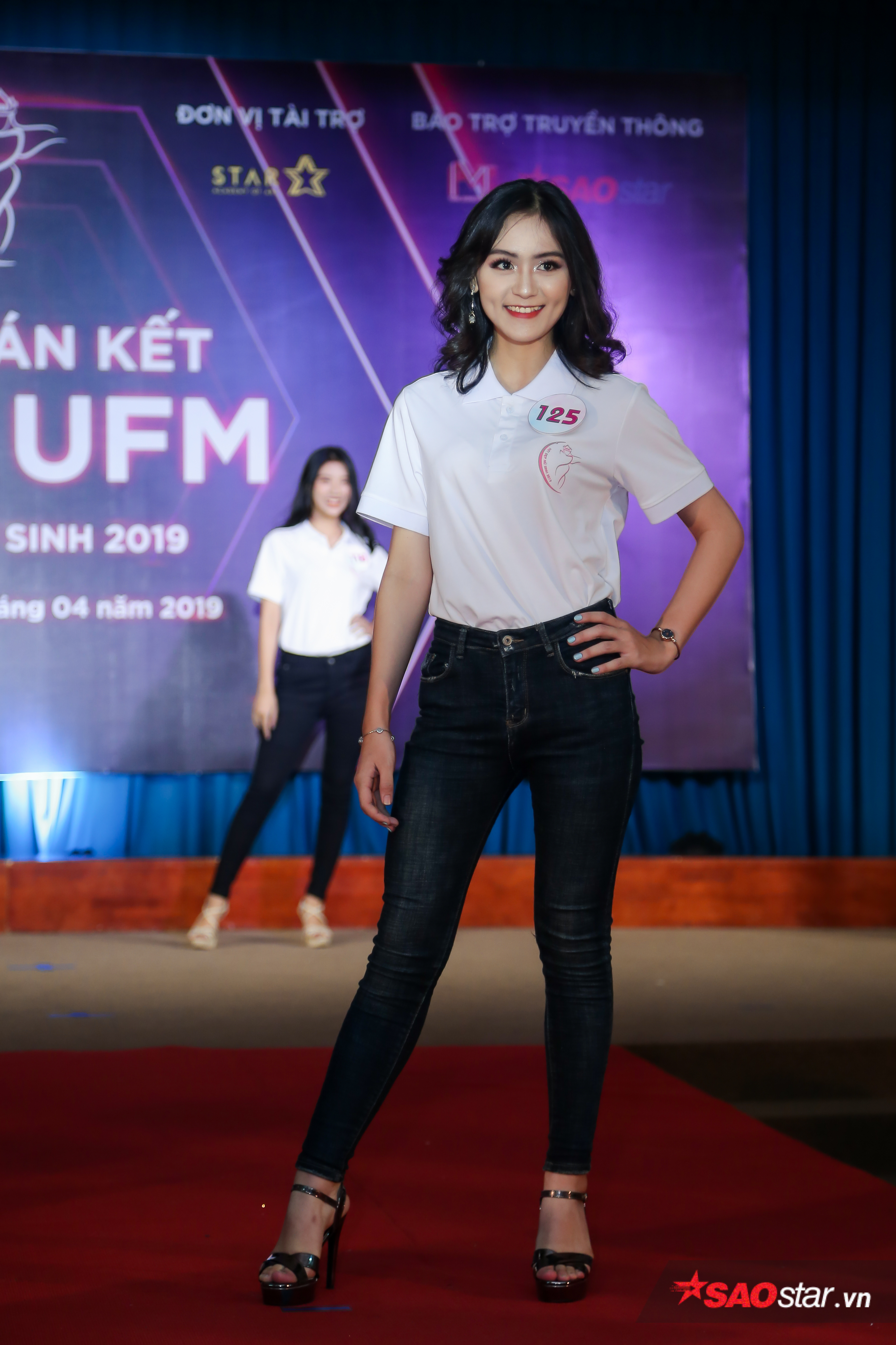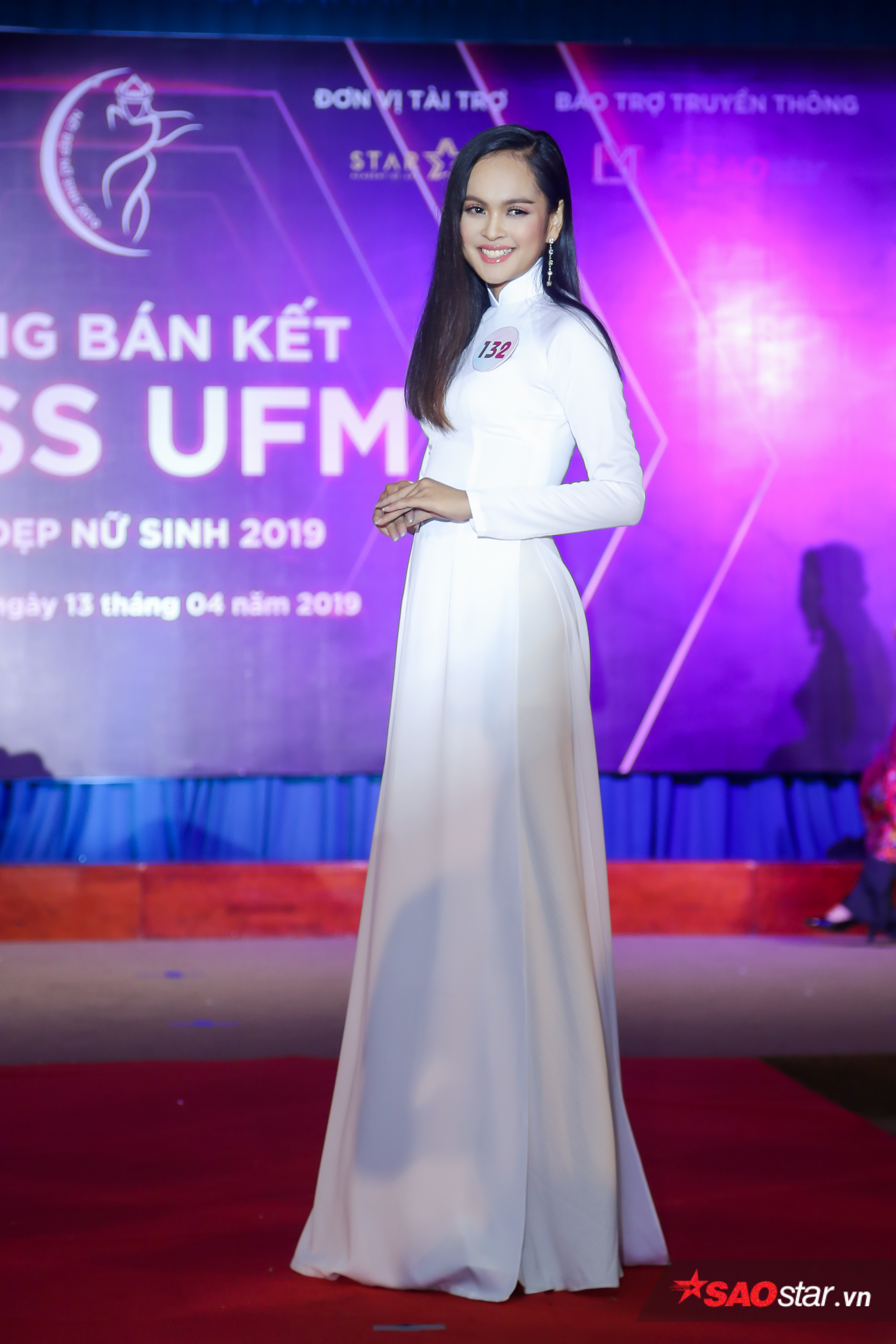 Đêm thi bán kết diễn ra với ba vòng thi: Trang phục Miss UFM, áo dài và trang phục tự chọn. Sải bước tự tin trên sân khấu sau bao ngày luyện tập, so với vòng sơ khảo, top 36 thực sự “thay da đổi thịt” trong hình ảnh, phong cách và khả năng trình diễn trẻ trung, chuyên nghiệp, đầy thu hút.